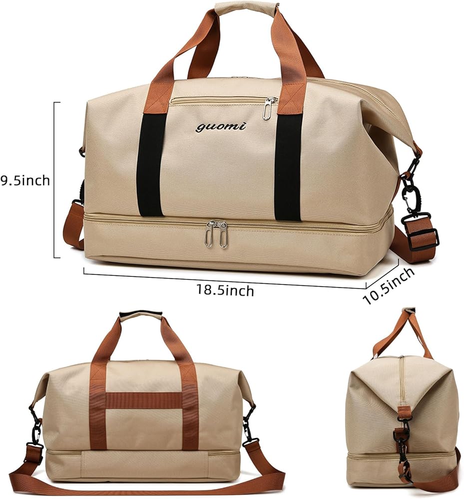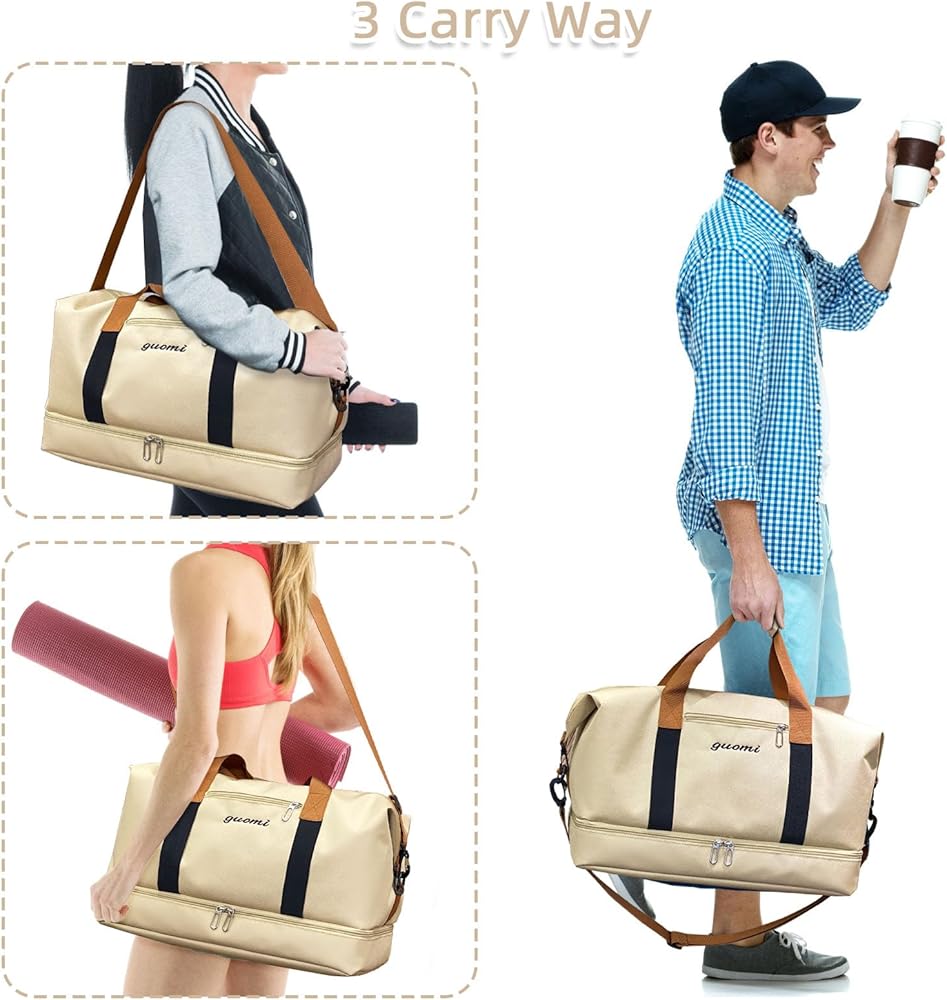 جيب منفصل جاف ورطب - يمكن للجيب المبطن بسحاب ومقاوم للماء من مادة PVC تخزين الملابس المبللة أو المناشف أو مستحضرات التجميل أو ملابس السباحة، مما يحافظ على الحقيبة نظيفة وغير مبللة. مادة النايلون المتينة والمقاومة للماء تحمي ممتلكاتك من التلف أثناء السفر
