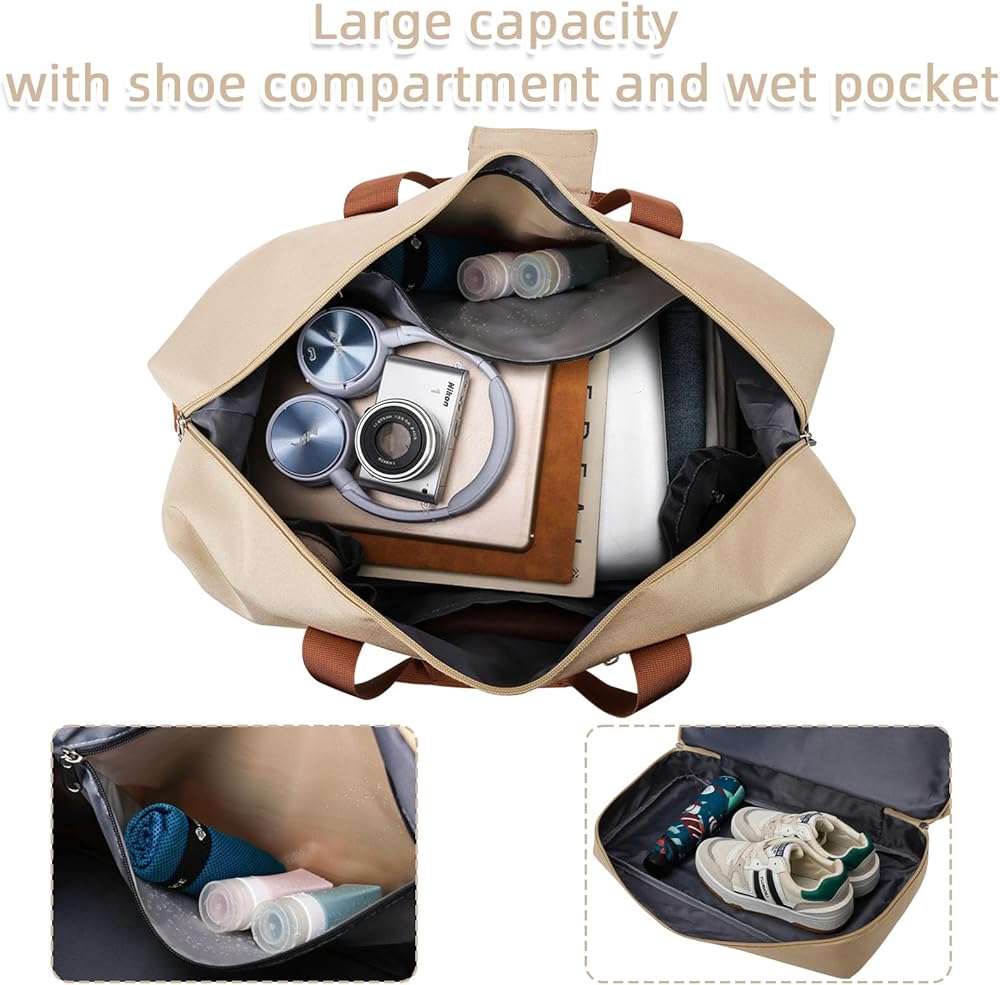 خفيفة الوزن وقابلة للحمل - حجم حقيبة عطلة نهاية الأسبوع هذه للنساء هو 47*27*24 سم/18.50*10.5*9.5 بوصة وتتوافق مع معظم متطلبات الأمتعة الدولية المحمولة. 3 أوضاع للحمل مناسبة لسيناريوهات التطبيق المختلفة