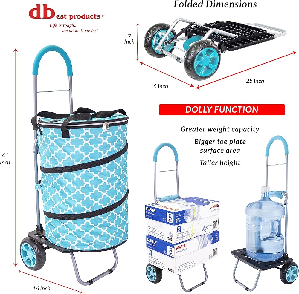 الحقيبة معزولة بالكامل ومثالية للحفاظ على طعامك باردًا أثناء رحلات البقالة الخاصة بك. أبعاد السلة هي 22 بوصة ارتفاع و14 1/2 قطر. استخدم عربة التسوق الخاصة بنا كعربة بقالة، أو حقيبة شاطئ بعجلات، أو حقيبة شاطئ دوارة - إنها مثالية لأي مناسبة.