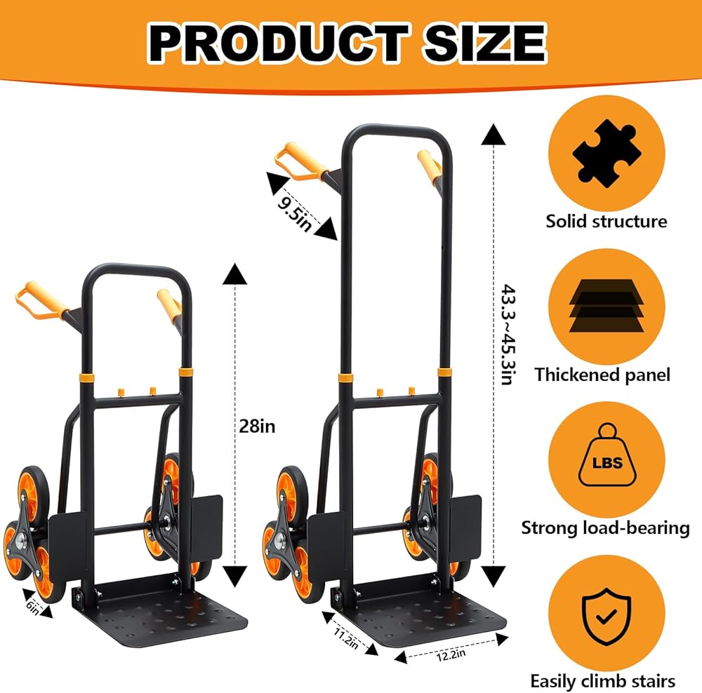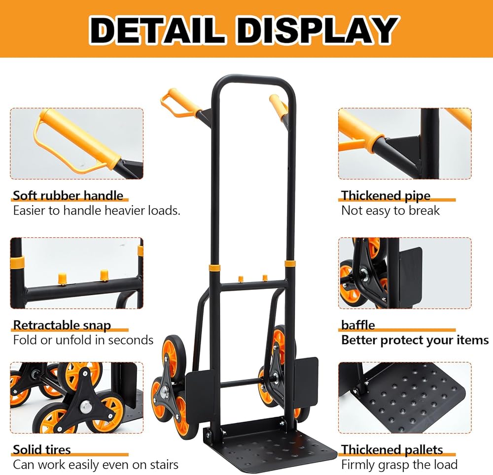 قدرة تحمل عالية: تتميز عربة الدمي الخاصة بنا للسلالم بقدرة تحمل مذهلة تصل إلى حوالي 330 رطل/ 150 كجم على السلالم، وحوالي 440 رطل/ 200 كجم على الأسطح المسطحة، لا داعي للقلق بشأن قوتها وثباتها أثناء الحركة حمولتك على الأسطح المختلفة