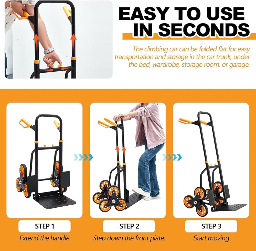 خفيفة الوزن ولكنها قوية: على الرغم من وزنها حوالي 26 رطل/12 كجم فقط، فإن دمية تسلق السلالم مصممة خصيصًا لحمل الأحمال الثقيلة، فهي سهلة المناورة أثناء حمل الأشياء الكبيرة والثقيلة مما يجعلها مثالية للاستخدام اليومي.