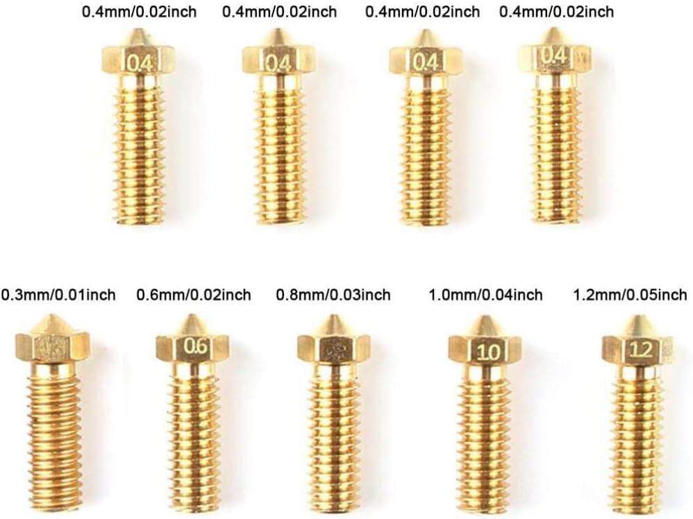 الفوهات: مجموعة فوهات EMVANV مكونة من 9 قطع: 0.4 مم، 0.3 مم، 0.6 مم، 0.8 مم، 1.0 مم، 1.2 مم تناسب الطابعة ثلاثية الأبعاد، حجم مختلف، تلبي جميع احتياجاتك.