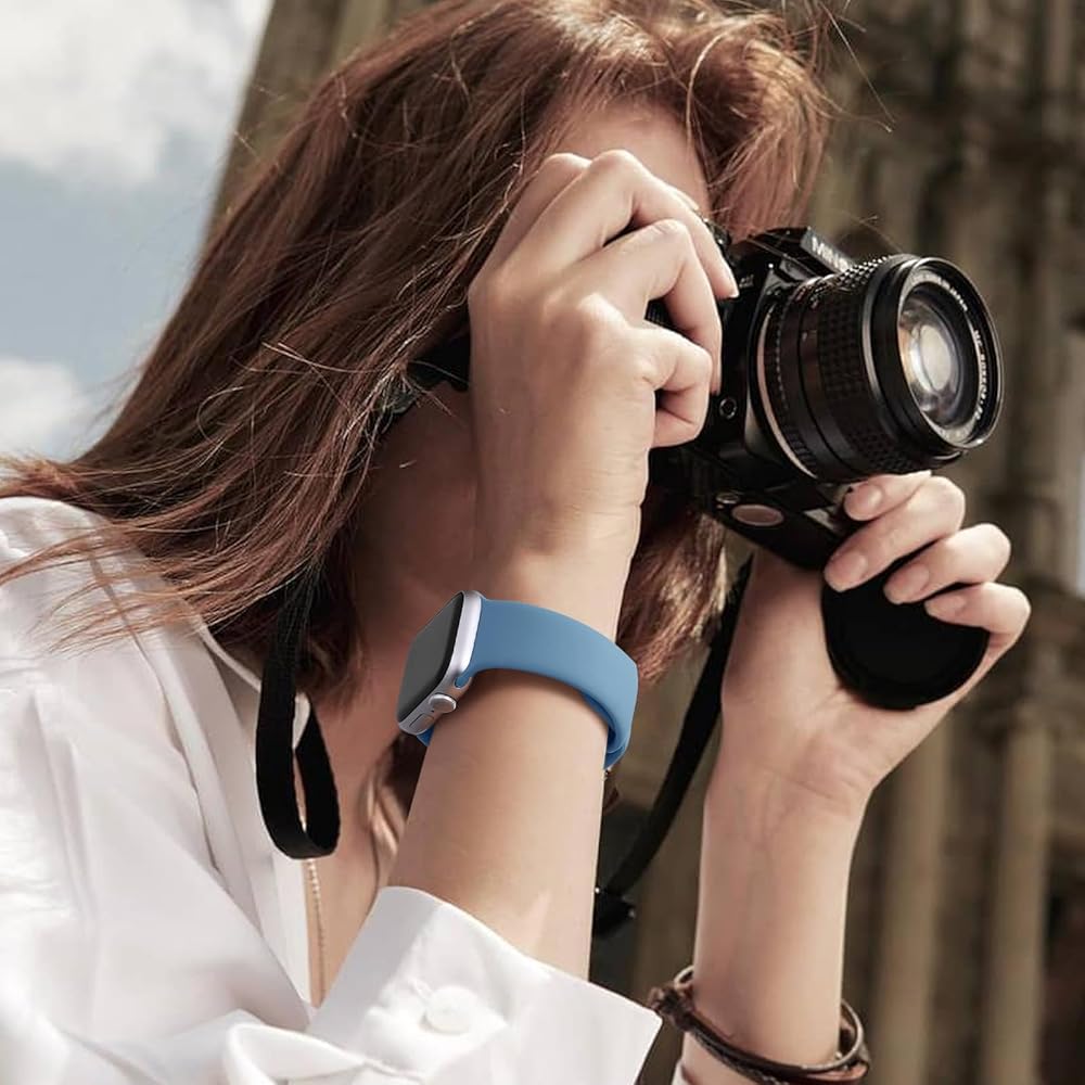 【مصممة لتوفير الراحة طوال اليوم】 مصممة لتكون مريحة للغاية وصديقة للمعصم، أحزمة ساعة التفاح الخاصة بنا للنساء والرجال مناسبة للارتداء اليومي بما في ذلك أيام العمل والتدريبات والنوم طوال الليل، ناعمة وصديقة للبشرة وعديمة الرائحة ولا تبهت. تصميم أنيق ومتكامل بإبزيم وحزام قوي، بالإضافة إلى حلقة من السيليكون وقفل ربط. هذا السوار الخاص بساعة Apple Watch أخف وزنًا وأكثر ملاءمة من الإبزيم المعدني التقليدي
