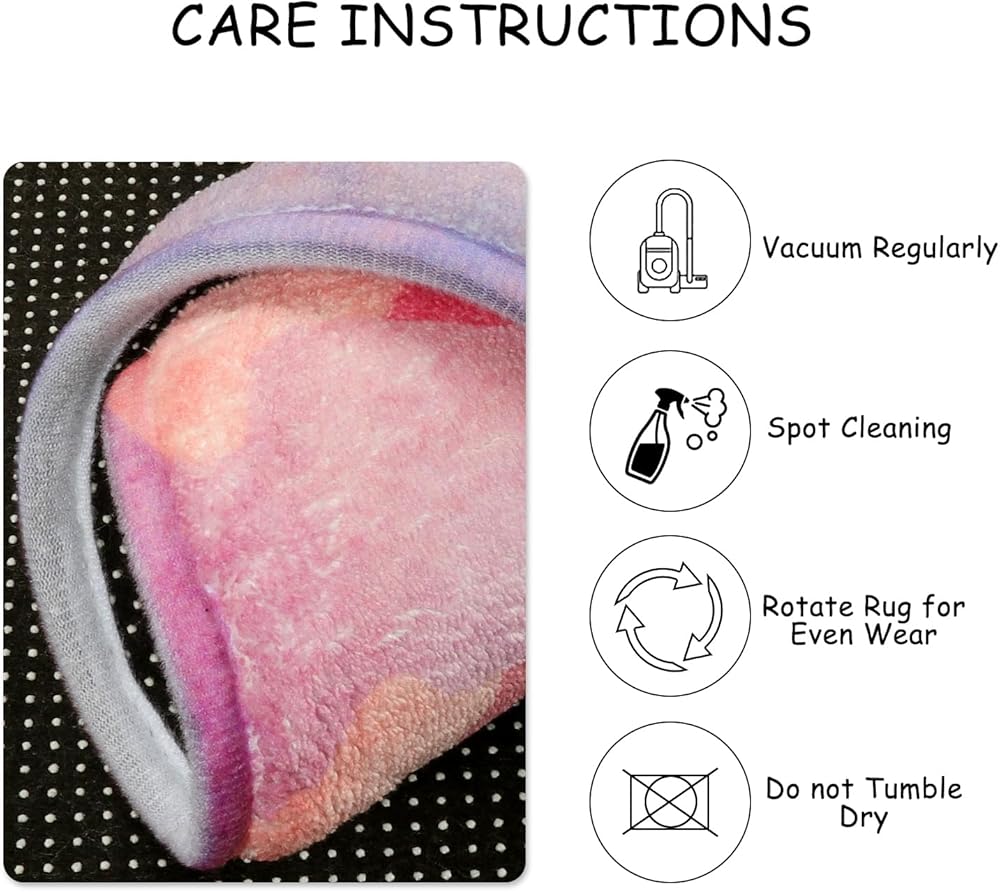 يمكن غسله في الغسالة: يوصى بالغسيل بدورة خفيفة في الماء البارد. يتم تجفيفه في المجفف باستخدام دورة الهواء فقط بدون حرارة. استخدم مكنسة كهربائية للتنظيف اليومي. استخدم كيس الغسيل لجعل سجادة منطقة الفتيات أكثر متانة.