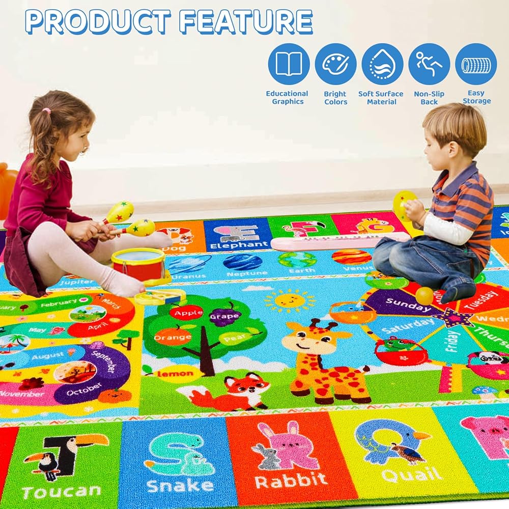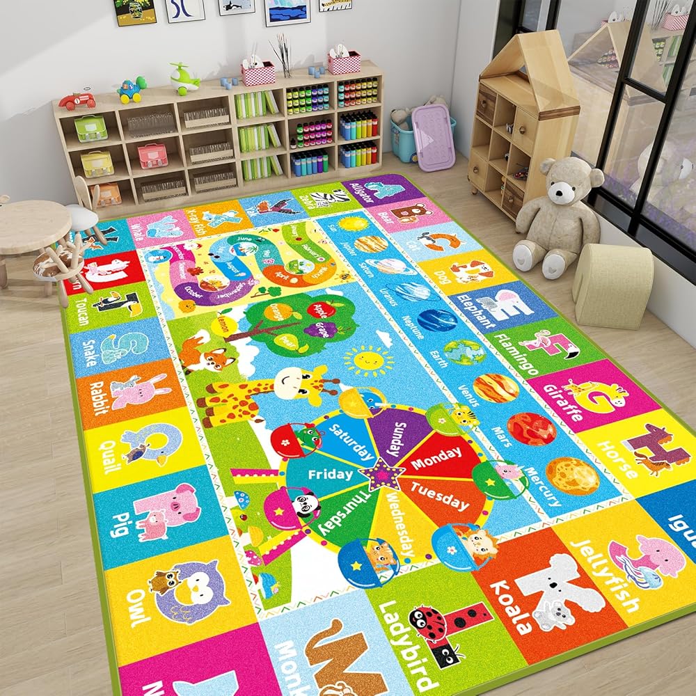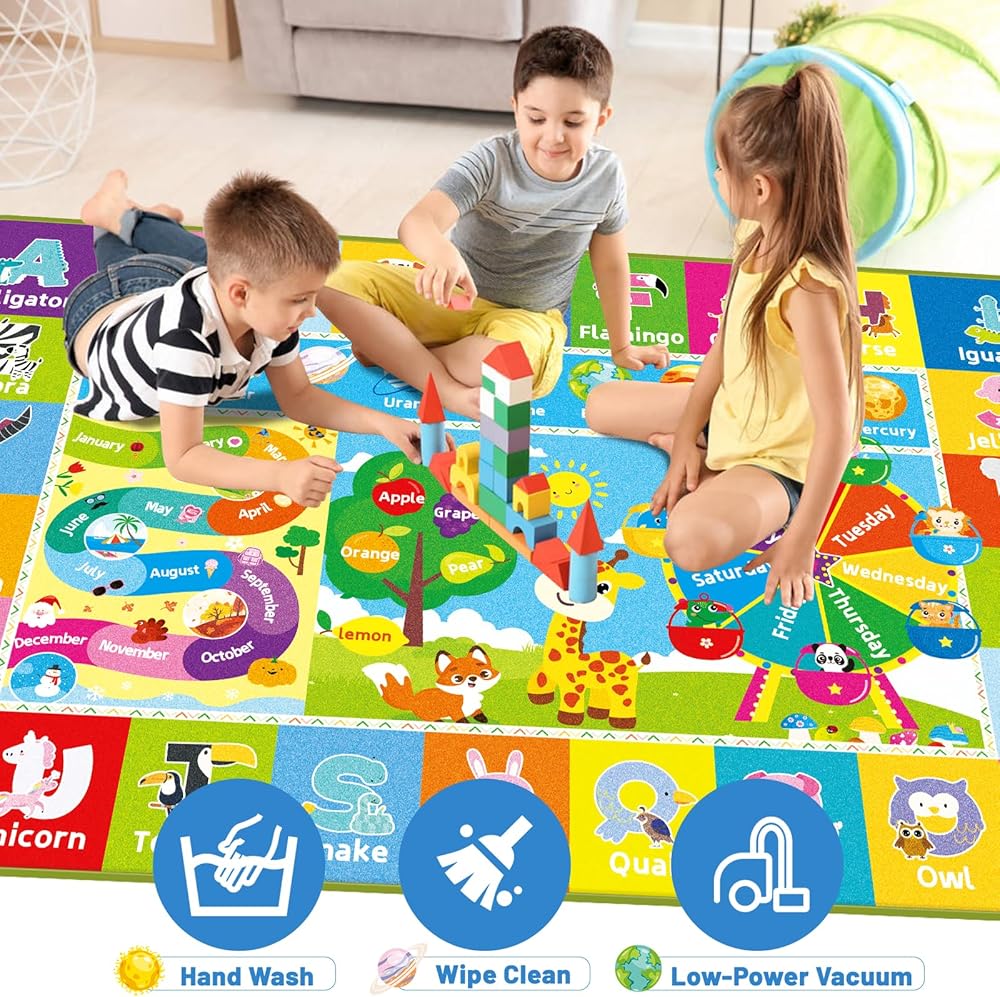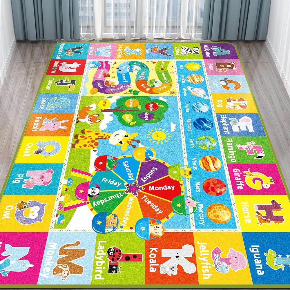 🎁 سجادة تعليمية للأطفال: تم تصميم سجادة غرفة لعب الأطفال لدينا باستخدام الحروف الأبجدية ABC والحيوانات والفواكه والكواكب والمواسم والأشهر والأسابيع والألوان الزاهية والأنماط الزاهية. تعتبر سجادة الأطفال هذه مثالية لتعزيز التعليم المبكر لطفلك. مثالية أيضًا للأطفال للعب والتحرك والزحف والتعلم، أحضر سجادة المنطقة التعليمية هذه إلى منزلك أو الفصل الدراسي لإضفاء إشراقة على المساحة الخاصة بك وزيادة رغبة أطفالك في تعلم أشياء جديدة. دع طفلك يكبر في اللعب والتعلم.