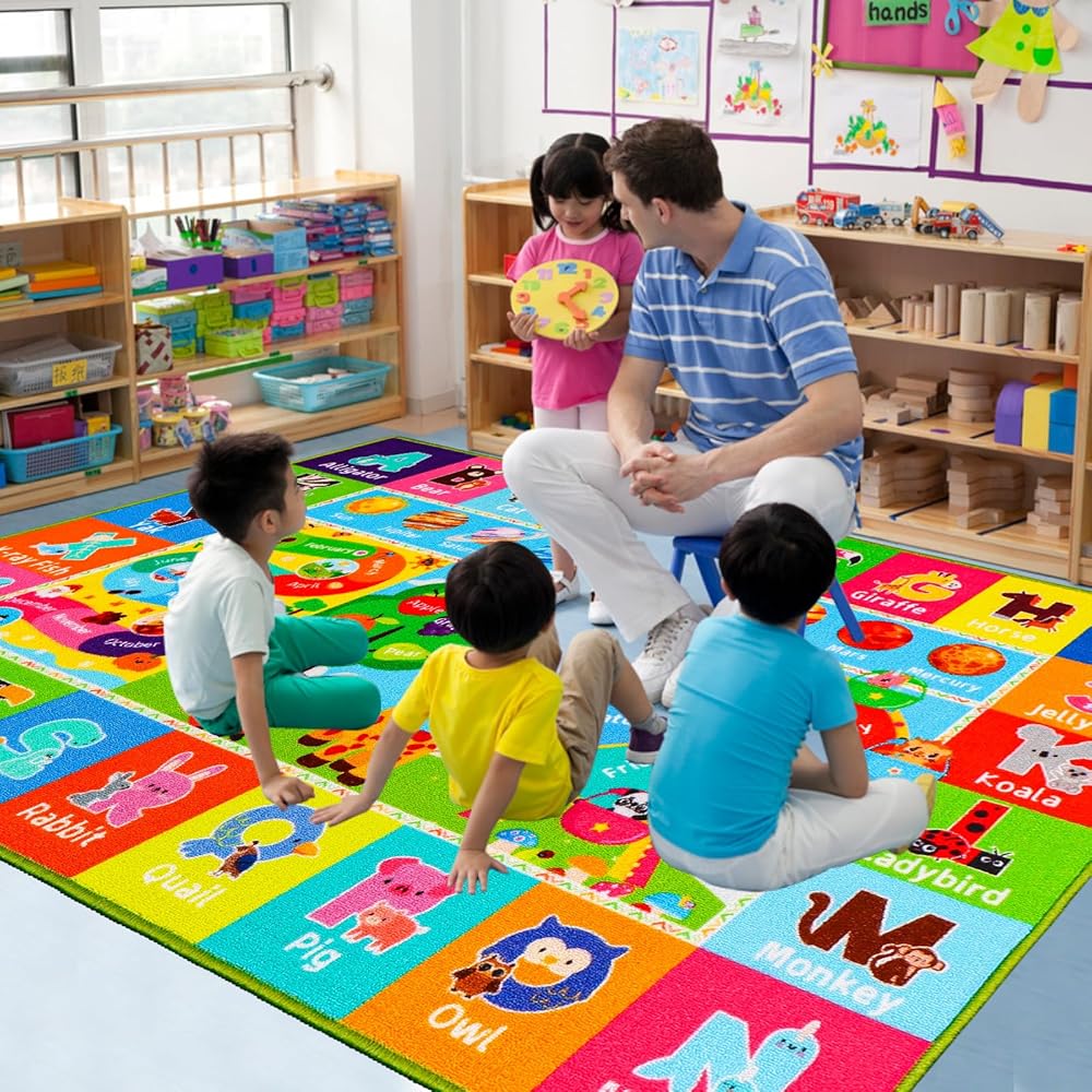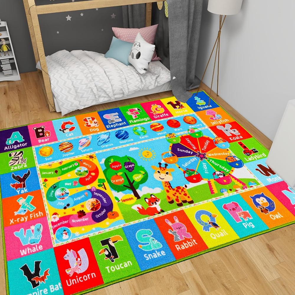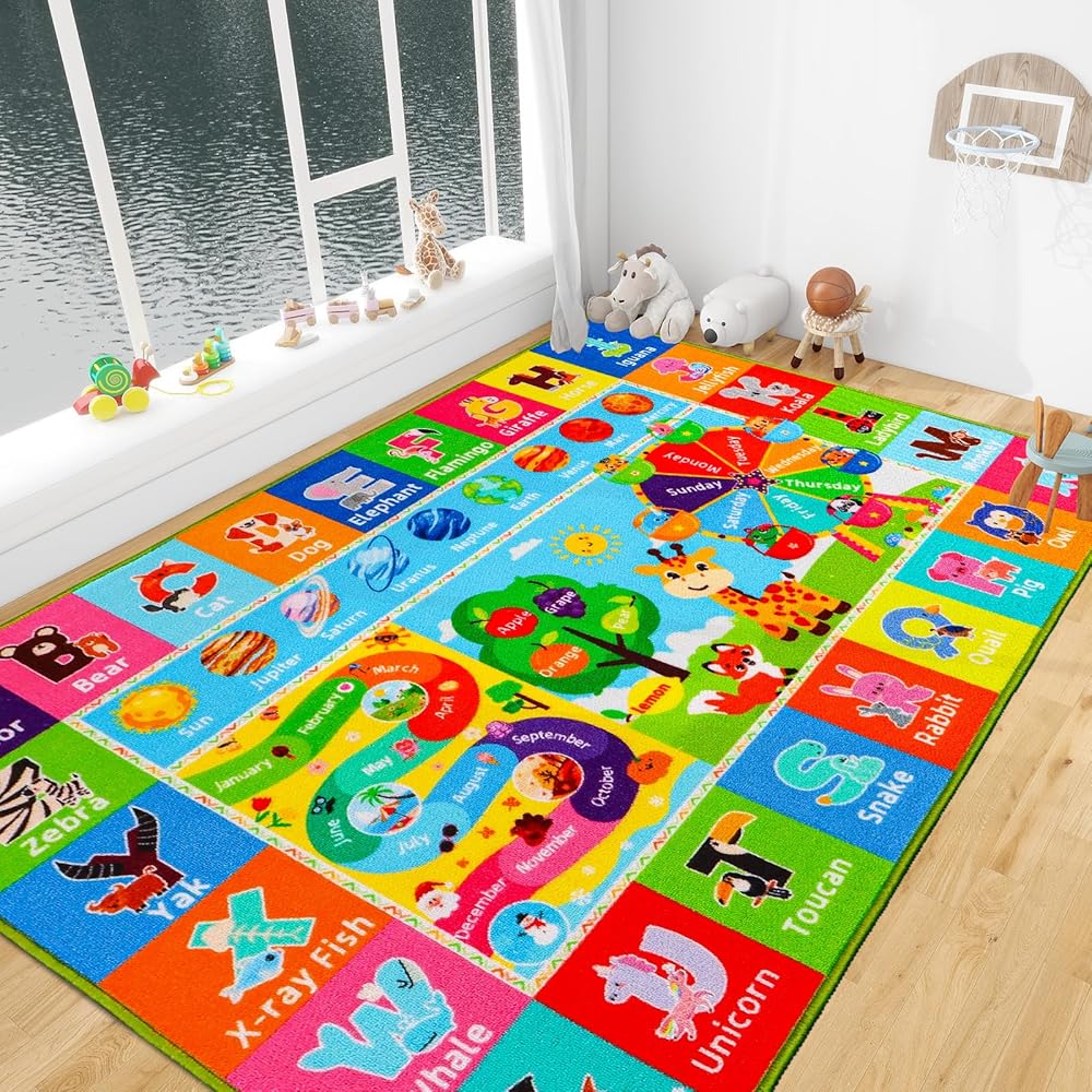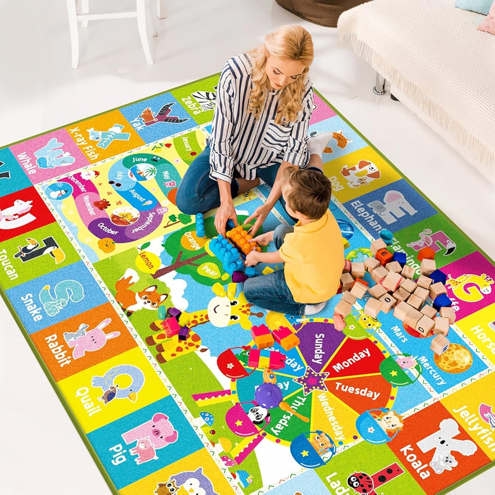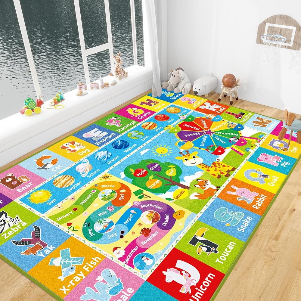 🎁 سجادة تعليمية للأطفال: تم تصميم سجادة غرفة لعب الأطفال لدينا باستخدام الحروف الأبجدية ABC والحيوانات والفواكه والكواكب والمواسم والأشهر والأسابيع والألوان الزاهية والأنماط الزاهية. تعتبر سجادة الأطفال هذه مثالية لتعزيز التعليم المبكر لطفلك. مثالية أيضًا للأطفال للعب والتحرك والزحف والتعلم، أحضر سجادة المنطقة التعليمية هذه إلى منزلك أو الفصل الدراسي لإضفاء إشراقة على المساحة الخاصة بك وزيادة رغبة أطفالك في تعلم أشياء جديدة. دع طفلك يكبر في اللعب والتعلم.