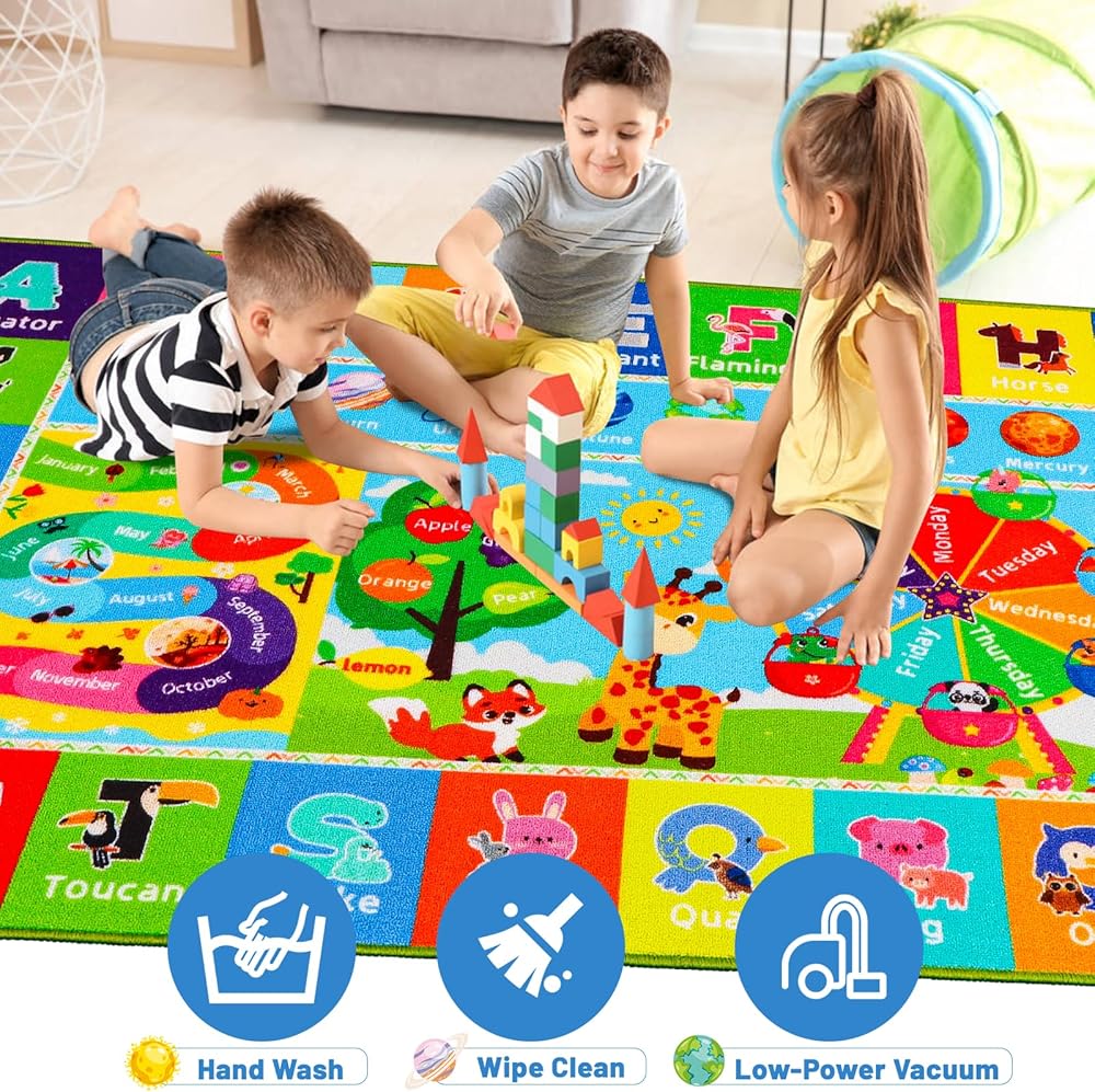 🎁 سجادة منطقة تعليمية قابلة للغسل في الغسالة: سجادة غرفة الأطفال سهلة التنظيف، ويمكن غسلها في الغسالة لتنظيف السجادة بالكامل، ويمكن إزالة الغبار والبقع على سطح السجاد بسهولة عن طريق التنظيف بالمكنسة الكهربائية وتنظيف البقع. اختيار مثالي للمناطق ذات الازدحام الشديد في غرفة الأطفال.