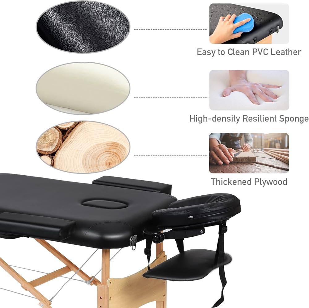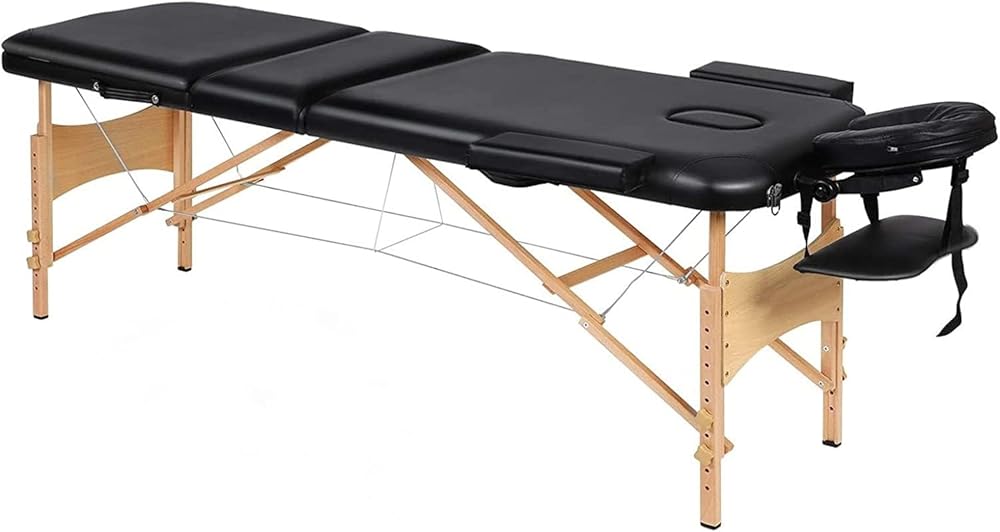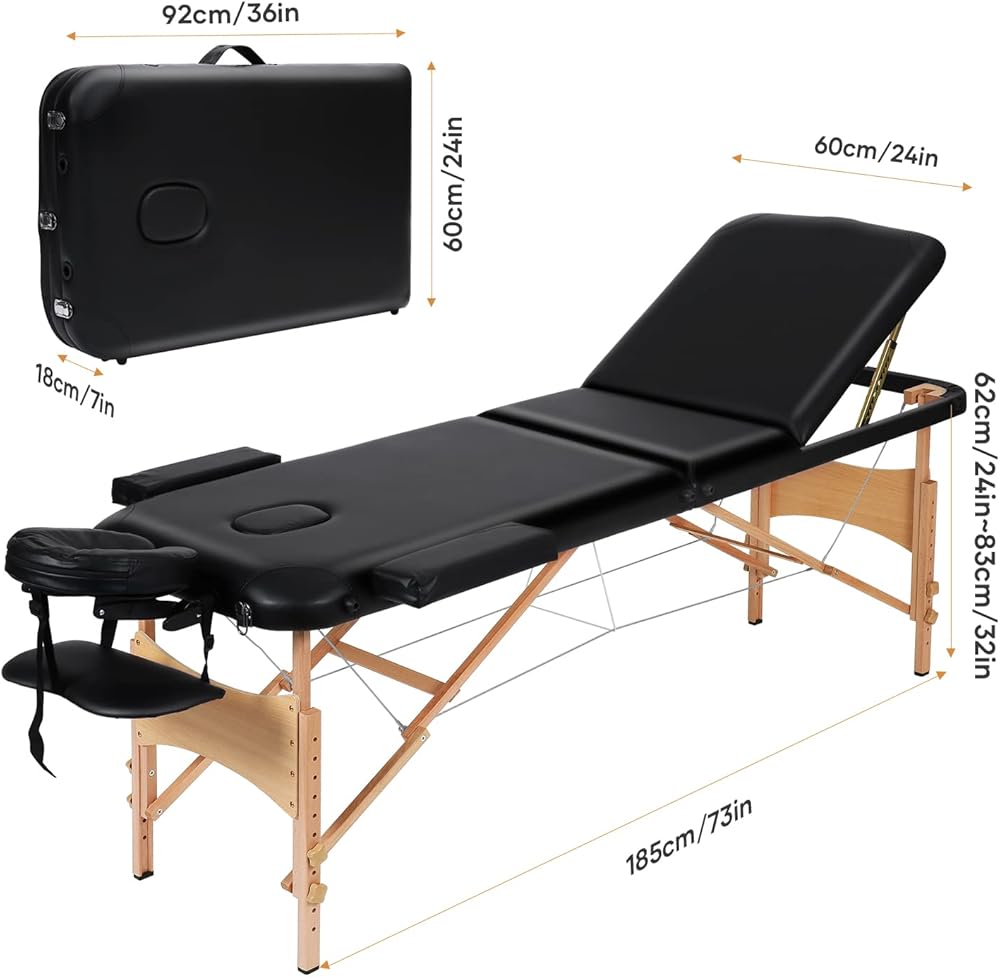 كيربودا سرير تدليك احترافي محمول قابل للطي مكون من 3 اقسام، سرير صالون سبا خشبي قابل للطي، يأتي مع حقيبة حمل وملحقات كاملة