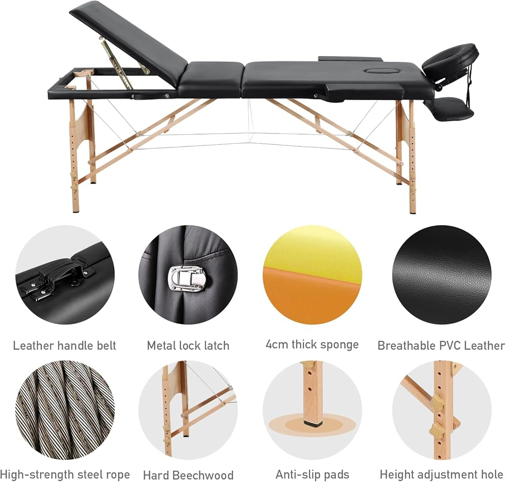 • 💖【إطار متين】طاولة التدليك مصنوعة من أرجل خشبية صلبة عالية الجودة. أقصى حمولة تصل إلى 500 باوند. طاولة تدليك بإطار خشبي، أكثر أناقة وجمالاً.