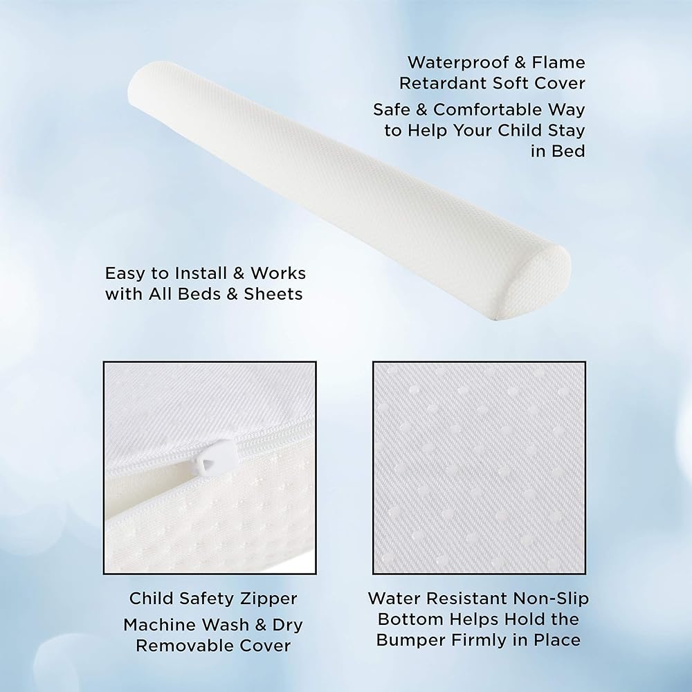 السلامة والراحة - هذا الواقي من الصدمات مصنوع من رغوة البولي يوريثان مع غطاء من البوليستر المقاوم للهب. وهذا يوفر لطفلك تحذيرًا لطيفًا بأنه قريب من حافة السرير وتجربة نوم أكثر راحة.