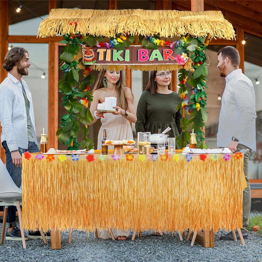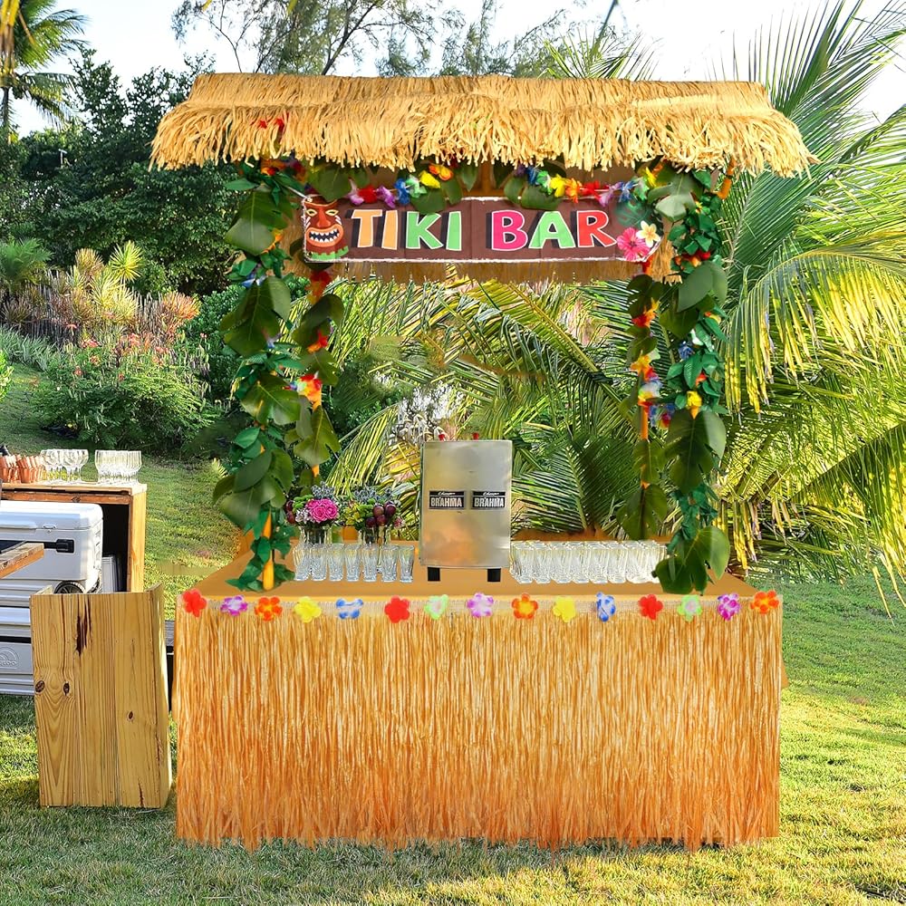 تطبيقات واسعة: سواء كنت تستضيف حفلة شواء في الفناء الخلفي، أو حفلة حمام السباحة، أو حفل زفاف هاواي، أو حفلة لوا، أو تجمع الشاطئ، فإن مجموعة Tiki Bar Hut الخاصة بنا هي إضافة رائعة لخلق جو احتفالي، مما يوفر تجربة ممتعة وتفاعلية لضيوفك. كما يمكنها إنشاء نقطة محورية لتقديم المشروبات والوجبات الخفيفة أو حتى كقطعة تزيينية لأكشاك الصور ومحطات السيلفي.