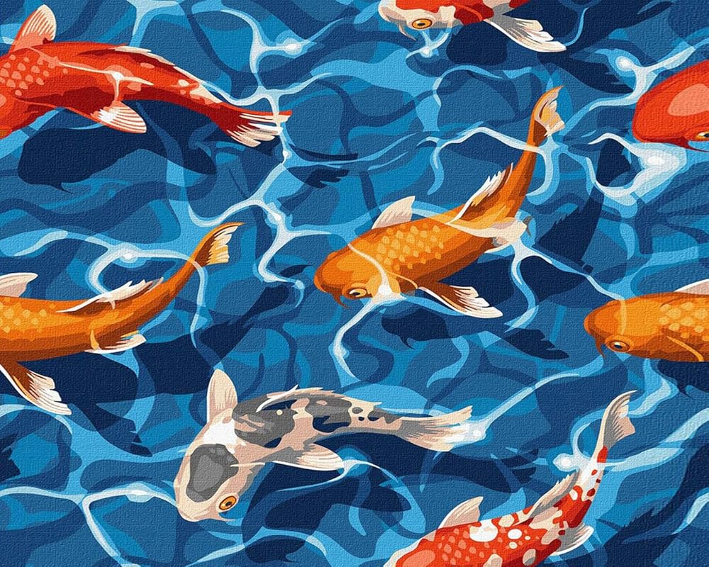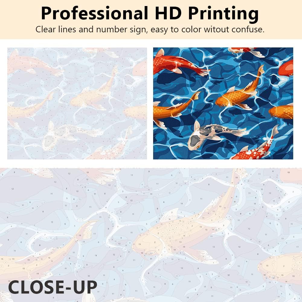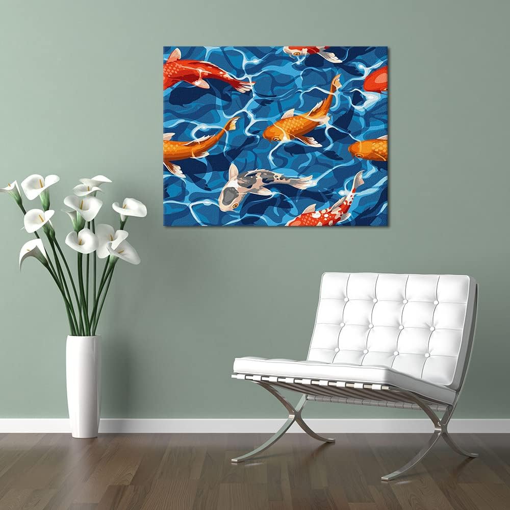 طلاء TISHIRON بالأرقام للبالغين المبتدئين، مجموعة طلاء زيتي بالأرقام للبالغين والأطفال، هدايا فنية من القماش لديكور المنزل - سمكة كوي 16 × 20 بوصة