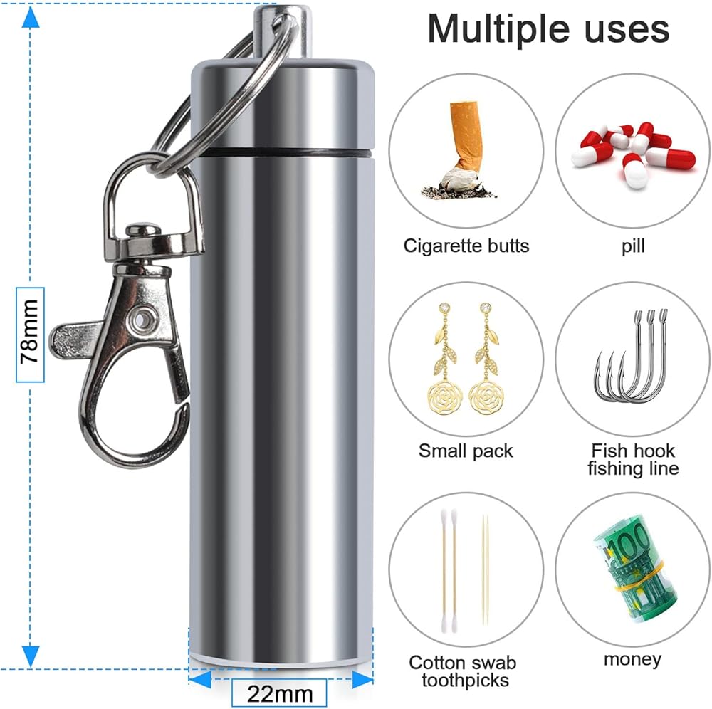 صندوق حبوب ألومنيوم خارجي - مقاوم للماء والرياح والغبار ومنافض السجائر بخطاف. وحدة تخزين محمولة متعددة الوظائف للأدوية والإلكترونيات والمزيد | اختيار أمازون