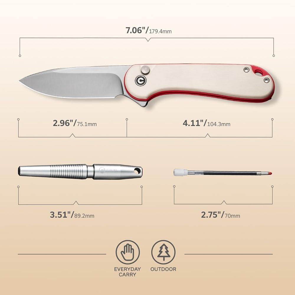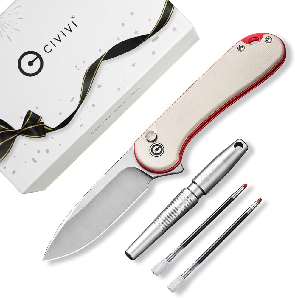 مجموعة هدايا خاصة من CIVIVI - - - تحتوي هذه العبوة على سكين جيب Elementum II بقفل زر، وقلم ألومنيوم مع عبوتين إضافيتين، و4 حلقات إغلاق. مثالية لعشاق EDC وعشاق الهواء الطلق.