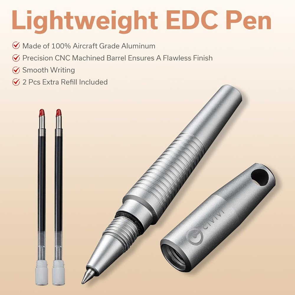 قلم ألومنيوم خفيف الوزن لـ EDC --- مصنوع من ألومنيوم من فئة الطائرات بنسبة 100%، أسطوانة دقيقة مصنوعة بآلة CNC تضمن لمسة نهائية لا تشوبها شائبة، مما يوفر تجربة كتابة سلسة.
