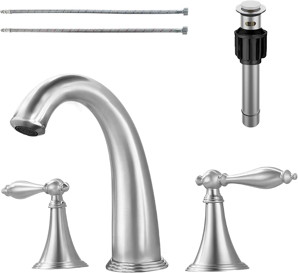 sanitemodar نحى لون الحمام بالوعة الحنفية، النحاس صنبور الحمام 3 حفرة، صنبور الحمام واسع النطاق للحوض 3 حفرة، 2 مقابض تصميم مع خطوط إمدادات المياه واستنزاف المنبثقة