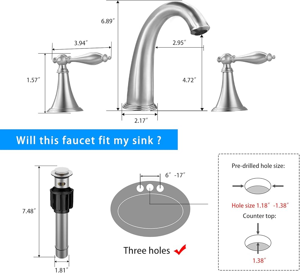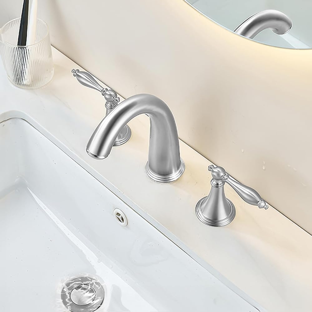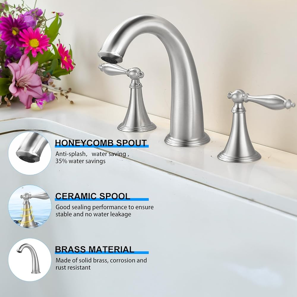 【نطاق الاستخدام】صنبور الحمام النحاسي المصقول مناسب للتركيب بثلاث فتحات، والتركيبات واسعة النطاق على أي مسافة تتراوح بين 6 و18 بوصة