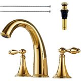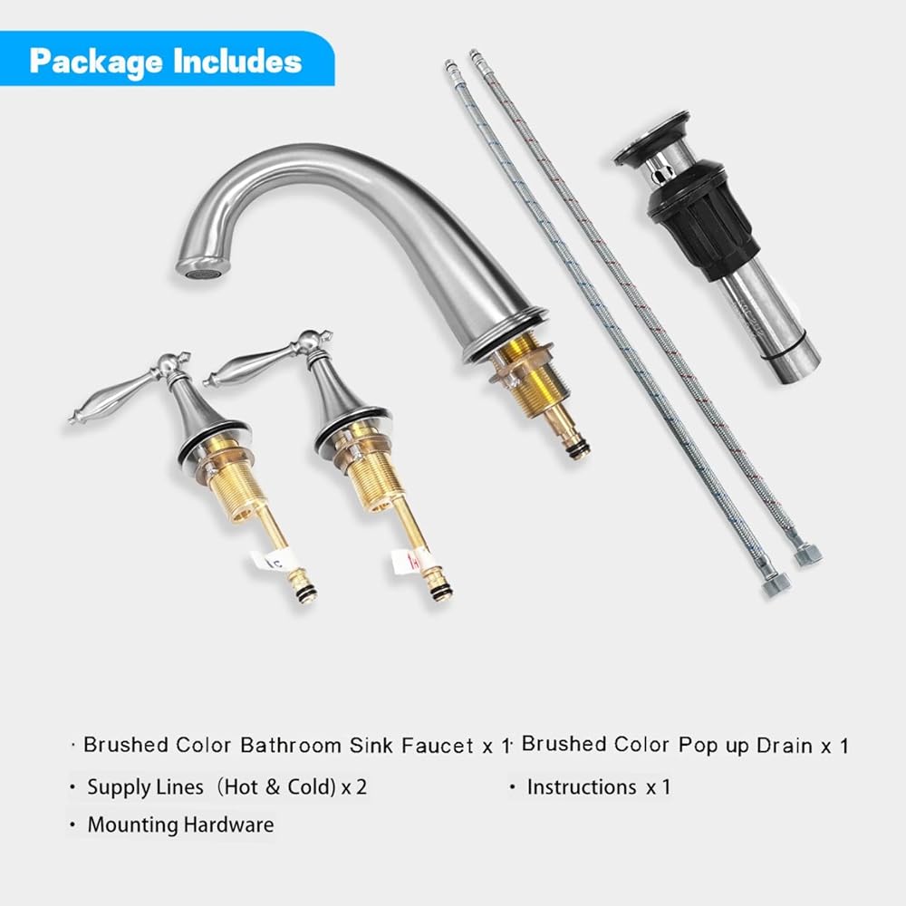 【تتضمن خطوط الإمداد القياسية】مجموعة صنبور الحمام الذهبية هذه المكونة من ثلاثة فتحات نقدم خطين قياسيين لإمداد المياه للتركيب، ولا يمكنك شراؤها بشكل منفصل. ولكن الصرف المنبثق غير متضمن