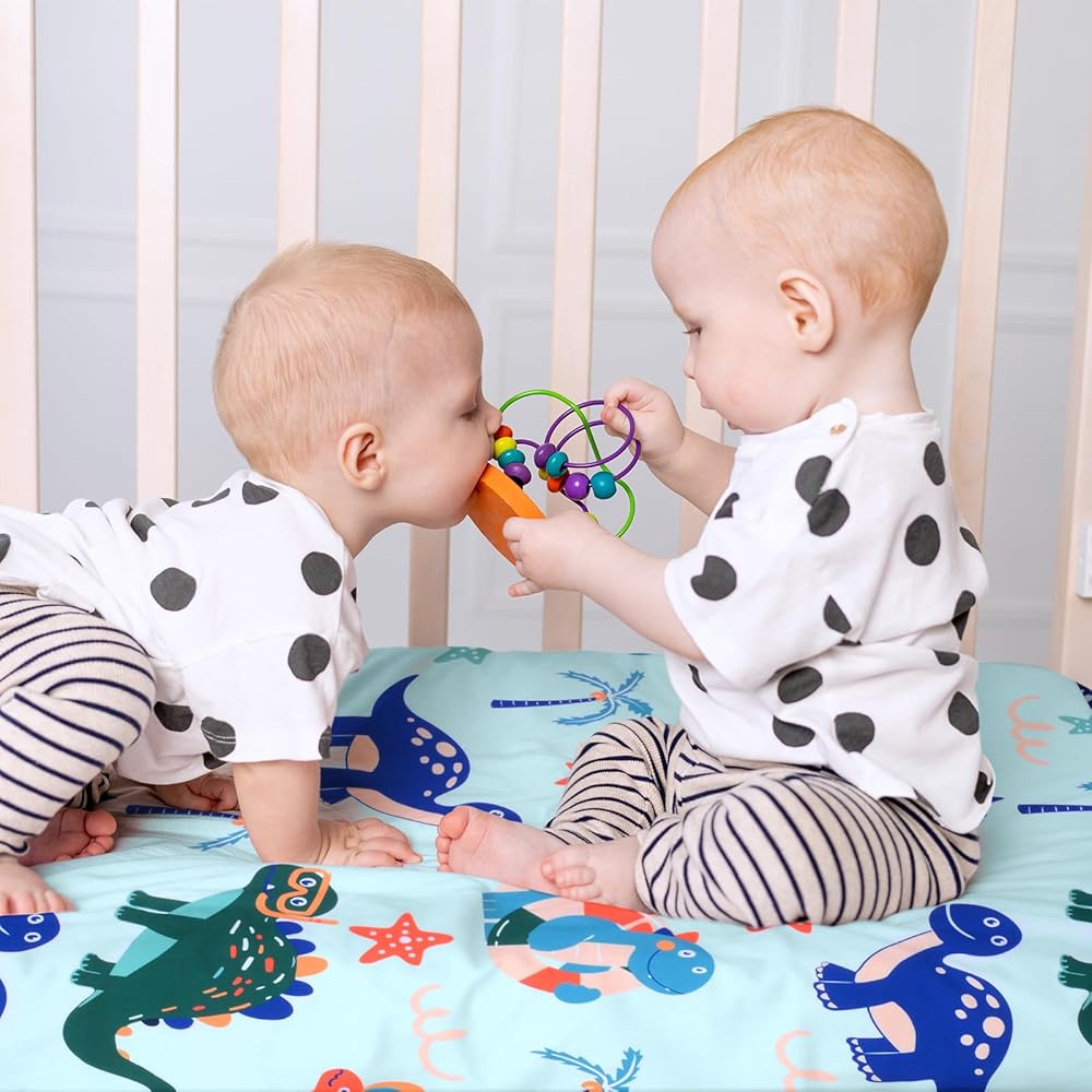 𝗣مثالية: ملاءات سرير الأطفال من الموسلين مناسبة لسرير الأطفال والمرتبة مقاس 52x28 بوصة، وسمك المرتبة يصل إلى 7". مجموعة ملاءات سرير الأطفال من الموسلين متاحة لتناسب مرتبة سرير الأطفال القياسية ومراتب الأطفال الصغار.