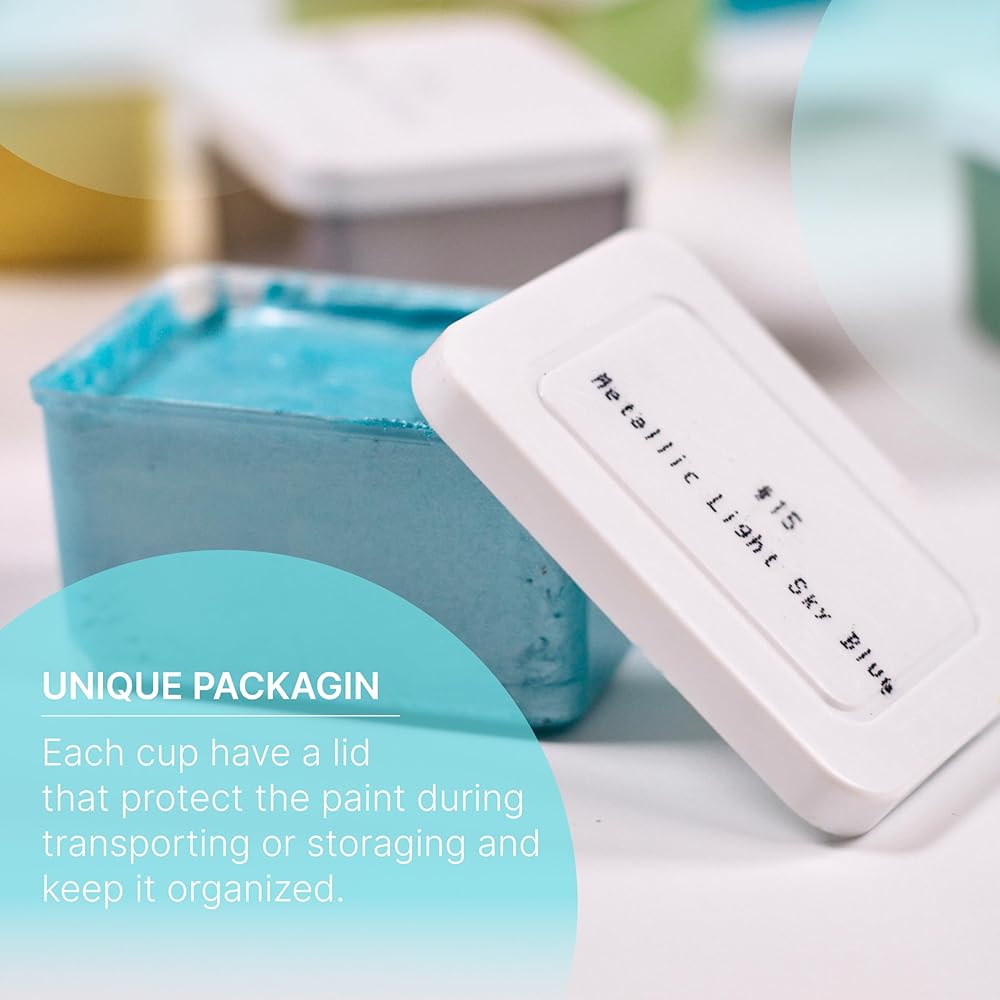 أكواب طلاء مع أغطية: مجموعات طلاء الغواش بتصميم جيلي مع أغطية تحافظ على ألوانك رطبة وكريمية لفترة طويلة. قم بالحماية من الخلط غير المتوقع أثناء طلاء الغوش أو التخزين أو النقل.