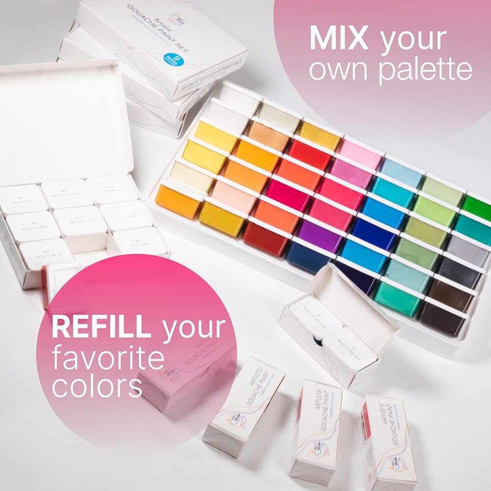 مجموعة طلاء الحرف اليدوية: الغواش عبارة عن طلاء مائي آمن وغير سام. ويستخدم هذا الطلاء من قبل الفنانين والمهندسين المعماريين والمصممين، وكذلك في المشاريع الحرفية ورسومات الأطفال.