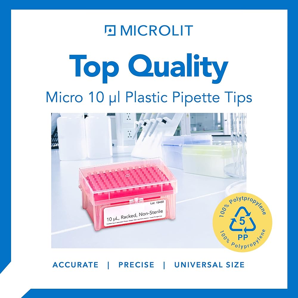 أطراف الماصات البلاستيكية ذات المقاس العالمي - تعمل أطراف الماصات المعملية لدينا مع Microlit RBO-10000 وغيرها من العلامات التجارية للماصات المعملية. تتناسب أطراف الماصات التي تستخدم لمرة واحدة هذه مع مخروط الطرف لمجموعة متنوعة من الماصات بشكل مثالي من أجل التوزيع الدقيق.