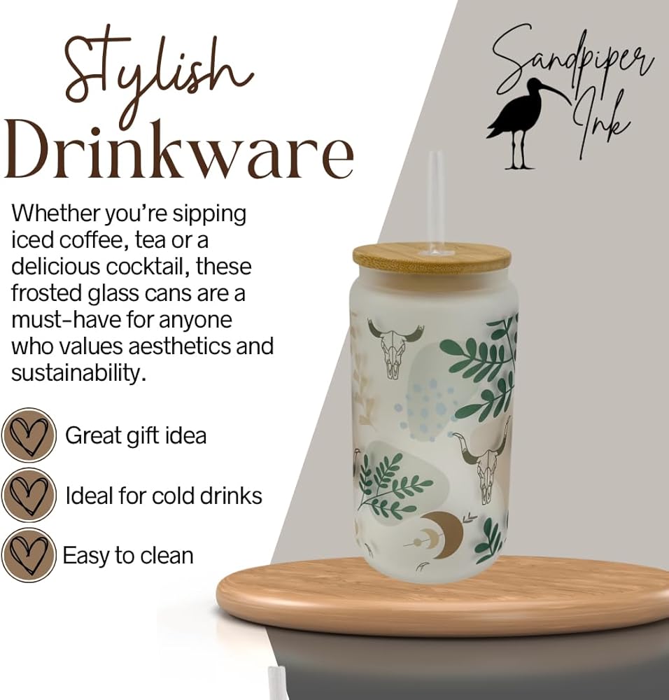 Versatile and Stylish: Our 16/20 oz frosted glass cup with a bamboo lid and plastic straw is the perfect companion for all your beverage needs. Whether you're enjoying a refreshing iced tea on a sunny summer day or sipping on a smoothie during your morning commute, this cup is designed to enhance your drinking experience.