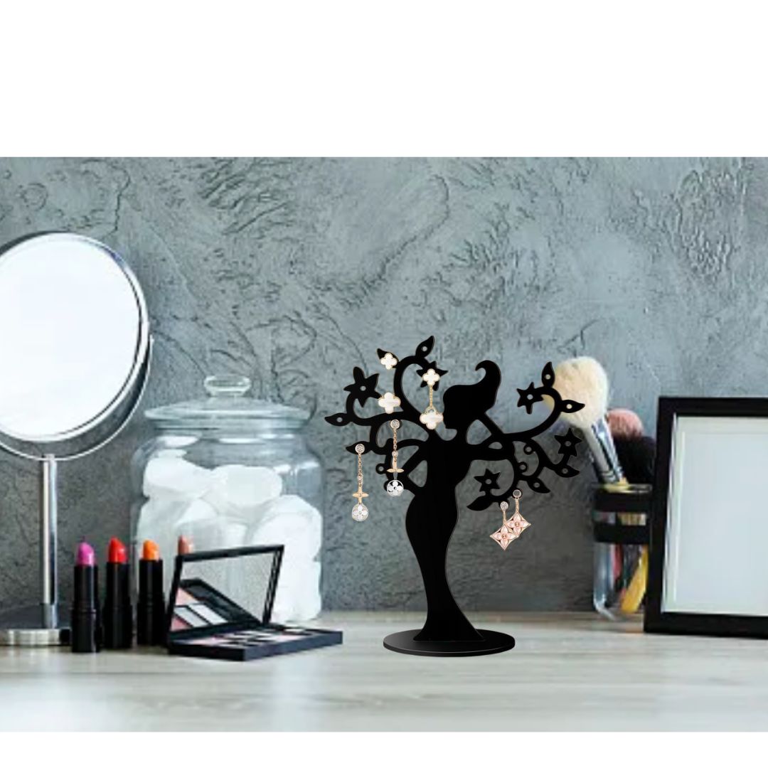 حامل أقراط فريد من نوعه: يتميز منظم حامل شجرة المجوهرات هذا بتصميم فريد وملفت للنظر والذي من المؤكد أنه سيبرز. يبدو أن راقصة أنيقة تؤدي رقصة Guanyin ذات الألف يد وتبدو القاعدة مثل فستان ذيل السمكة على شكل حورية البحر. طريقة ممتعة لعرض مجموعات الأقراط الخاصة بك وتنظيم مجوهراتك.