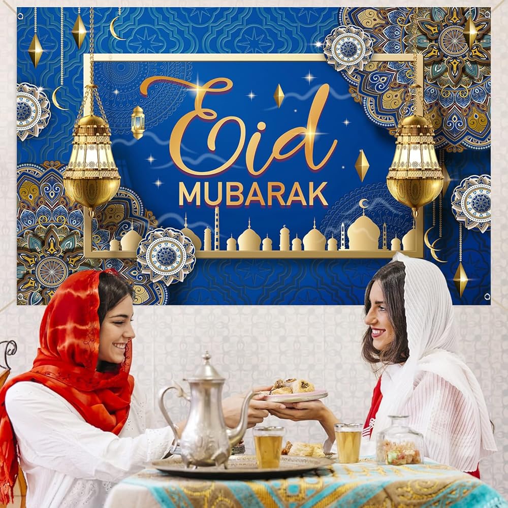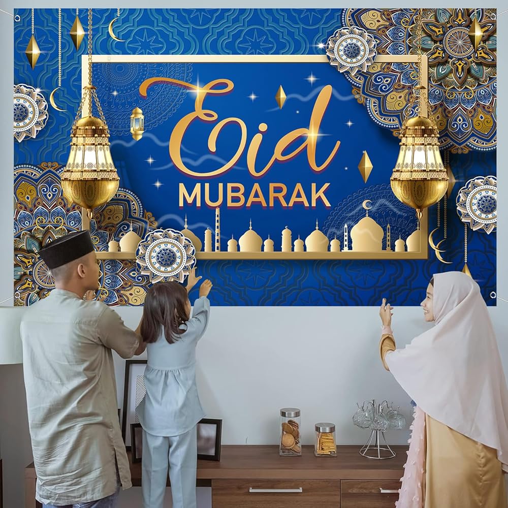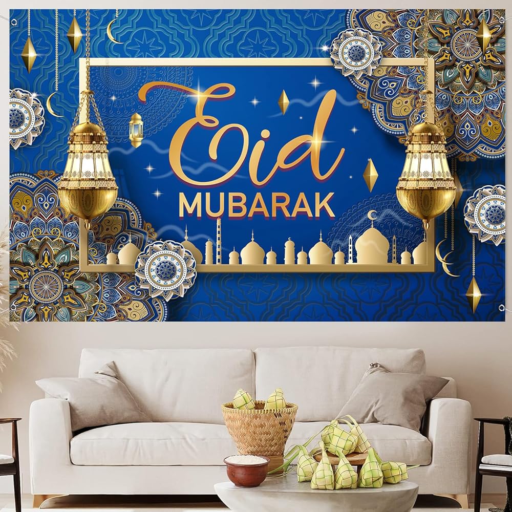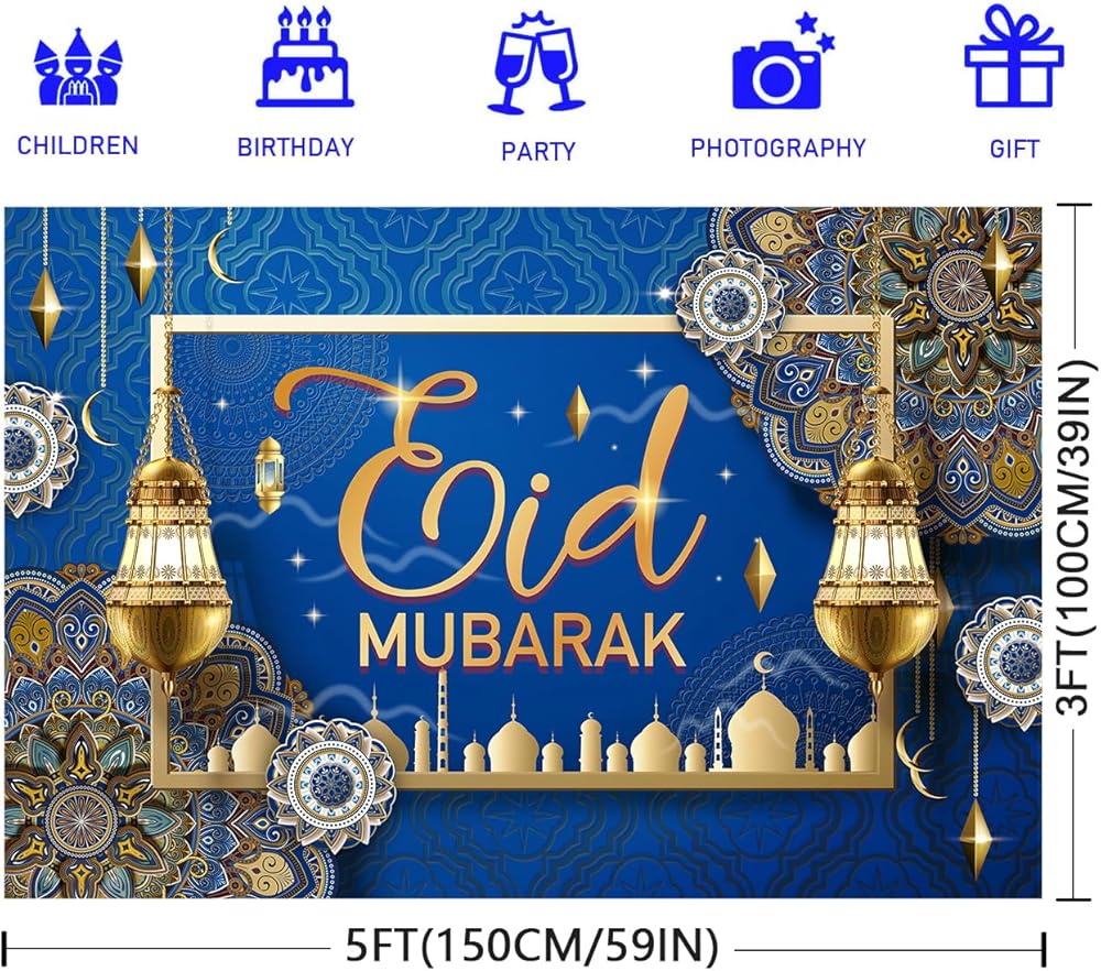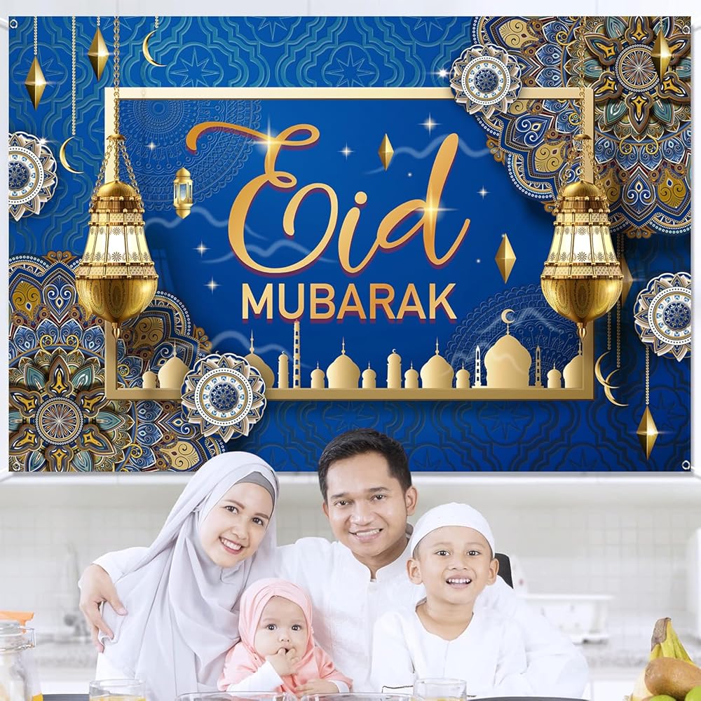 مناسبات واسعة: زينة الخلفية اللافتة الخاصة بنا مناسبة جدًا لتزيين حفلات عيد مبارك الإسلامي. يمكنك تعليقها على النوافذ وأفنية الحديقة والأسوار والجدران وأبواب المرآب والشرفات لإظهار حبك لمنزلك وعائلتك وأصدقائك. يمكن استخدامها أيضًا في إقامة عيد مبارك، وعيد الفطر، وحفلة رمضان، وعطلة الحج.