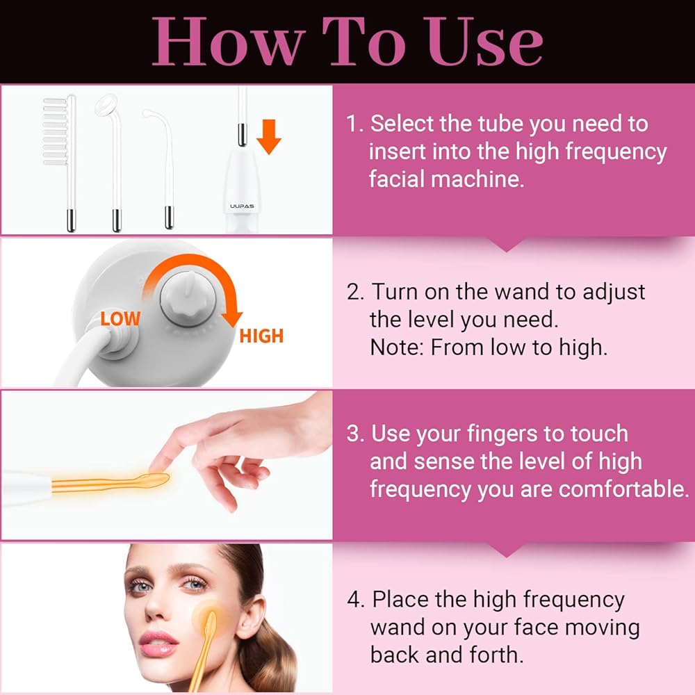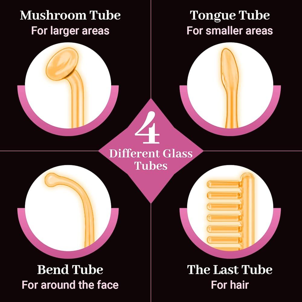 💖【4 أنابيب مختلفة متعددة الوظائف】تأتي ماكينة الوجه عالية التردد يووباس مع 4 عصي برتقالية مختلفة عالية التردد لتلبية جميع احتياجاتك، 1 × أنبوب فطر، 1 × أنبوب لسان؛ 1 × أنبوب منحني؛ 1 × أنبوب آخر. يمكن وضعه على مناطق مختلفة. أنبوب الفطر مناسب للمناطق الأكبر حول الوجه؛ أنبوب اللسان وأنبوب الانحناء مناسبان للمناطق الأصغر من الوجه. يومًا بعد يوم، سترى نسخة أفضل من نفسك!