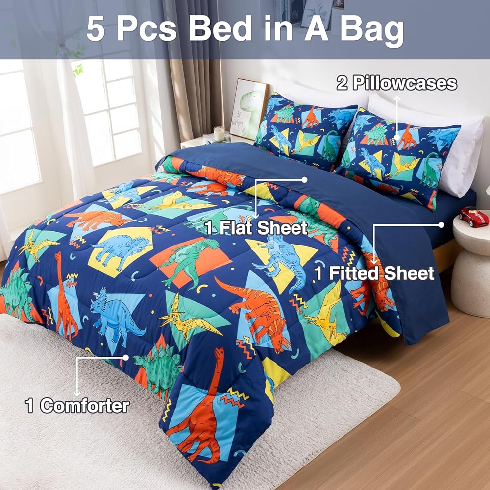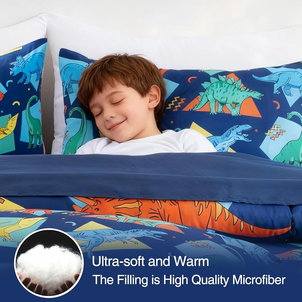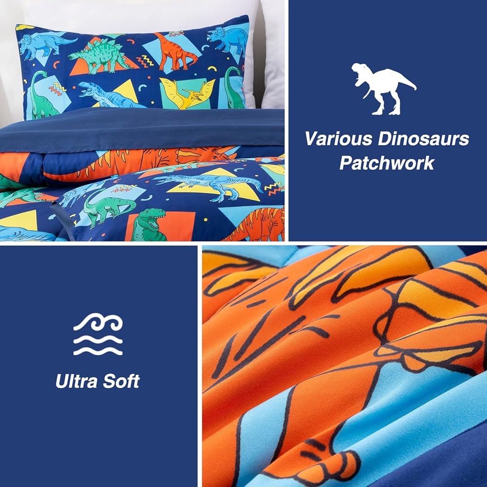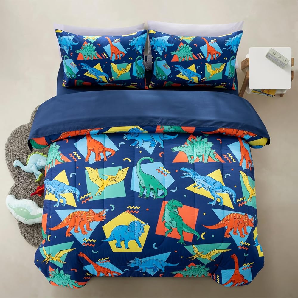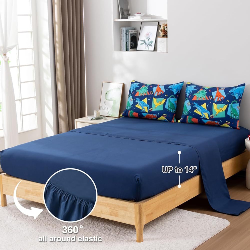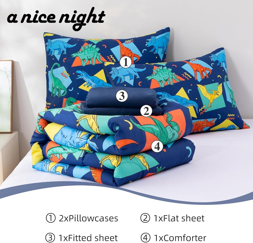 ما تحصل عليه: طقم فراش للأطفال مكون من 4 قطع يشتمل على: 1 لحاف ذو وجهين (42 بوصة × 57 بوصة)، 1 كيس وسادة ذو وجهين (20 بوصة × 30 بوصة)، 1 ملاءة علوية مسطحة (45 بوصة × 60 بوصة) و1 ملاءة سفلية مثبتة (28 بوصة × 52 بوصة × 8 بوصة). تم قياس جميع القطع لتناسب سرير الأطفال الصغار ذو الحجم القياسي.