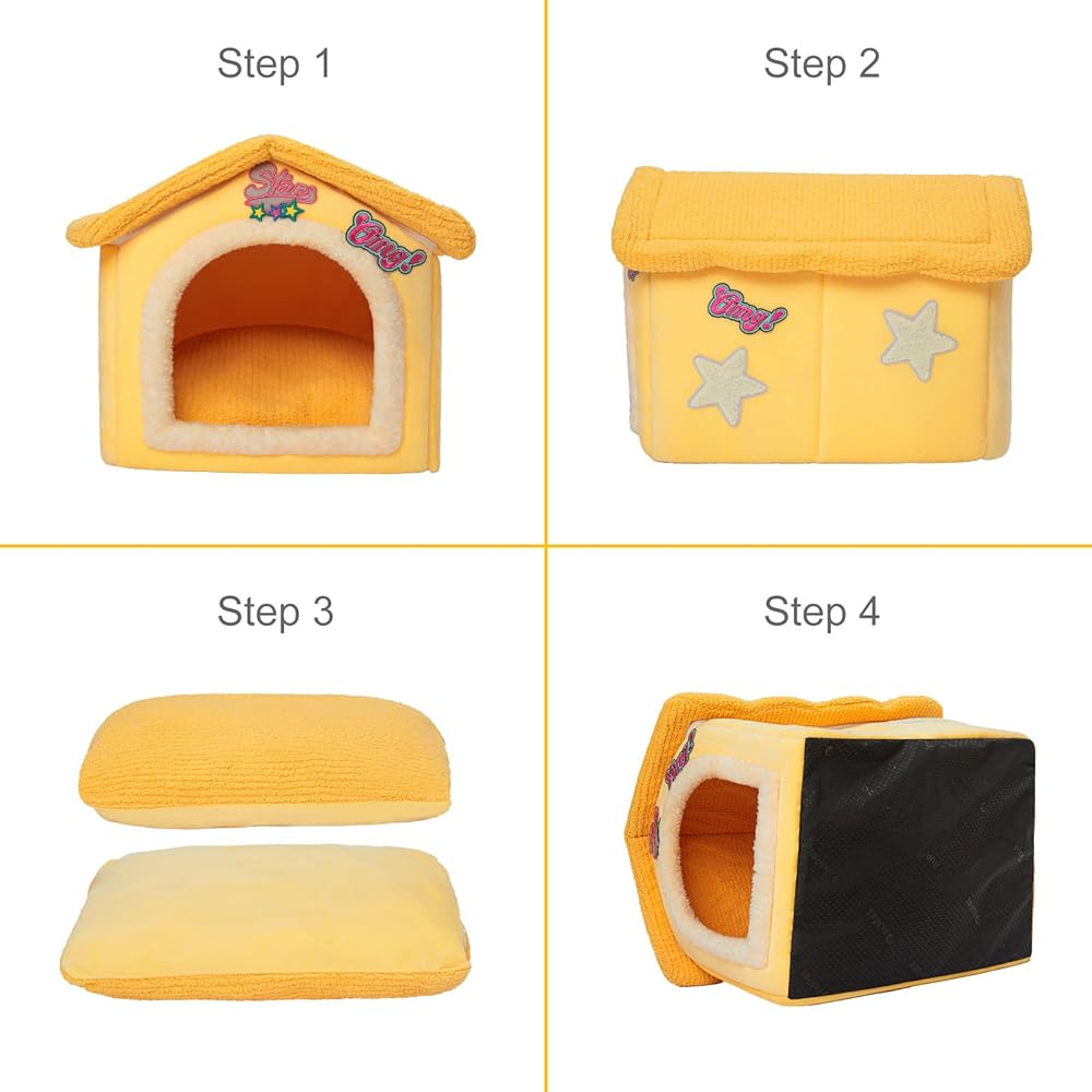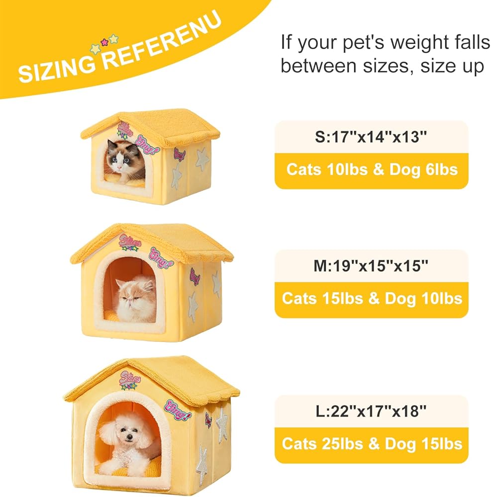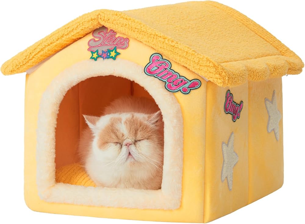 بيت الكلاب الصغير من Jiupety، بيت القطط الدافئ المغلق، سرير كهف ناعم للقطط، بيت كلب داخلي مع وسادة قابلة للإزالة وقابلة للغسل، بيت قطط لطيف، عش نوم للحيوانات الأليفة، بيت حيوانات أليفة مريح للجرو والقطط، أصفر L