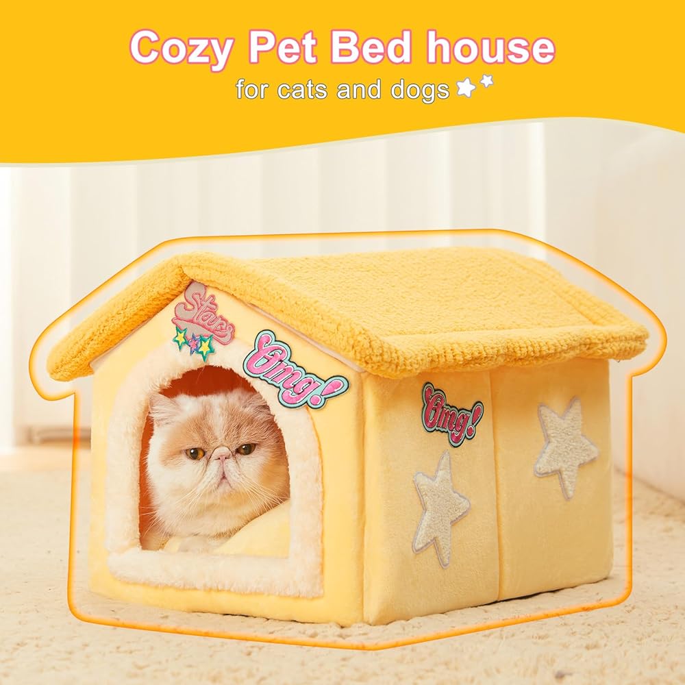 بيت مريح للكلاب الصغيرة: يتميز سرير الحيوانات الأليفة الخاص بنا بتصميم منزل على شكل نجمة لطيف يضيف الدفء والسحر إلى أي مساحة داخلية. إنه يخلق جوًا مريحًا وجذابًا، دع حيوانك الأليف يمتلك منزلًا دافئًا وترحيبيًا.