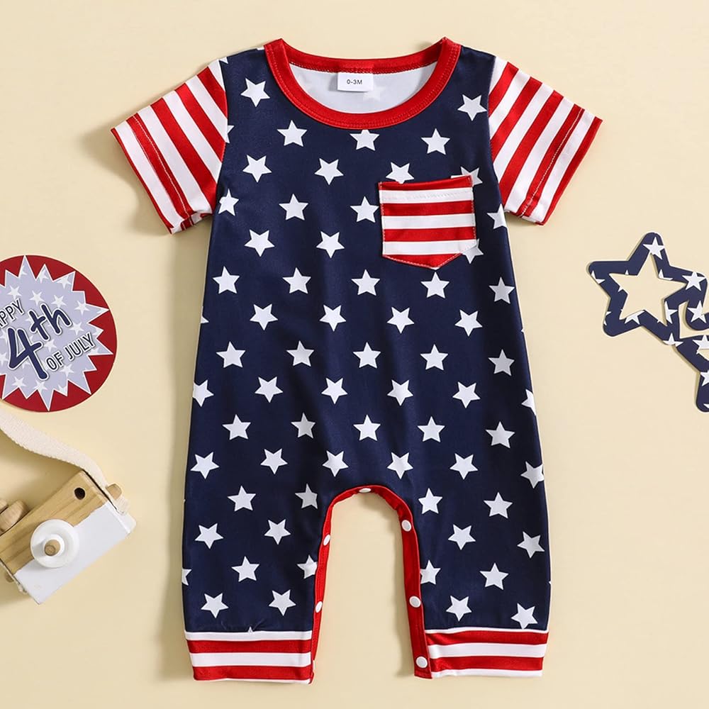 العبوة: 1* رومبر العلم الأمريكي؛ ملابس طفل رضيع في الرابع من يوليو، ملابس طفل رضيع في الرابع من يوليو.