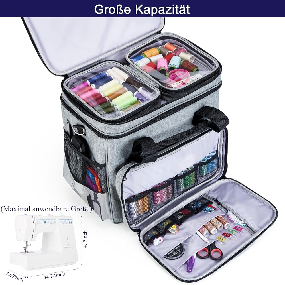 🎉【قماش مخصص عالي الجودة】حافظة ماكينة الخياطة هذه مصنوعة من نسيج نايلون مشفر وسميك مخصص، وهي مقاومة للخدش ومقاومة للتآكل ومتينة! إن نظام الألوان الرمادية المموهة المخصصة على الجزء الأمامي والجوانب من حقيبة الظهر يجعلها تبدو أفضل وفريدة من نوعها ~