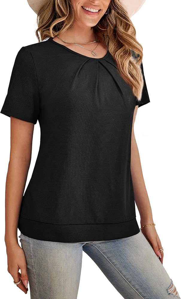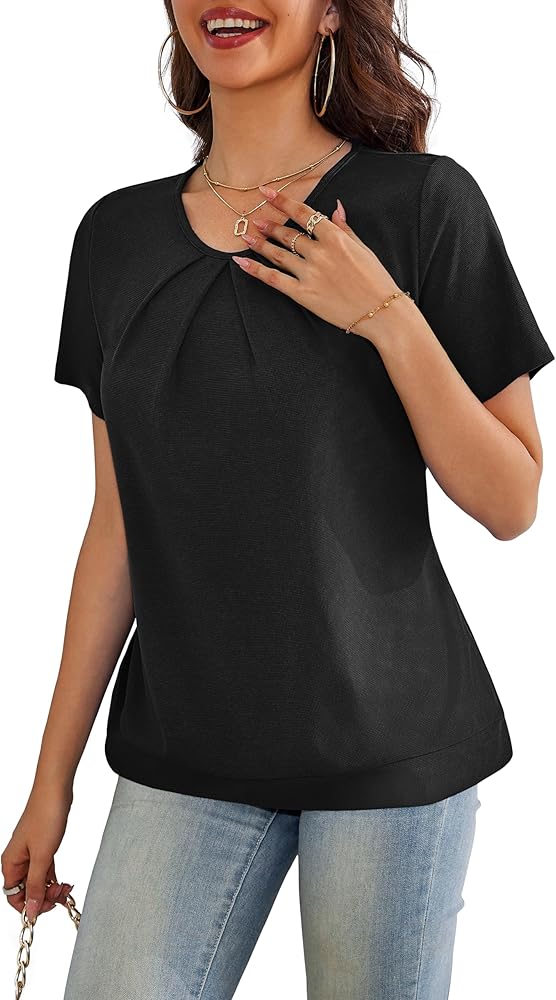 - المزايا: برقبة دائرية وأكمام قصيرة، يتميز الجزء الأمامي من الجزء العلوي بتصميم مطوي، والنمط البسيط يضيف قصة جذابة وجذابة؛