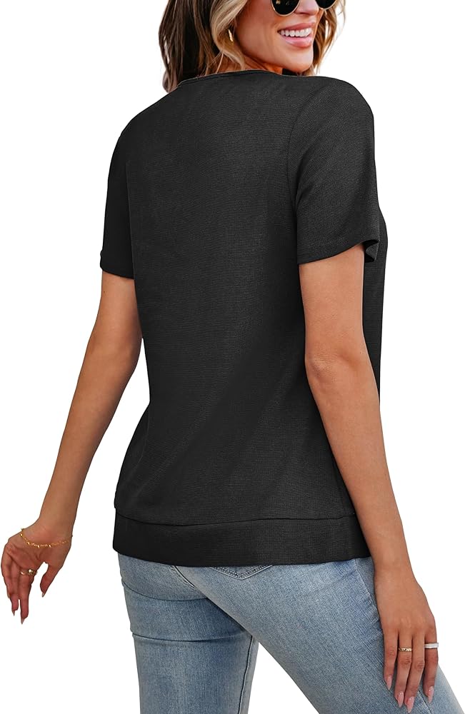 قمصان LIENRIDY النسائية قصيرة الأكمام ورقبة دائرية فضفاضة كاجوال للصيف L-XL