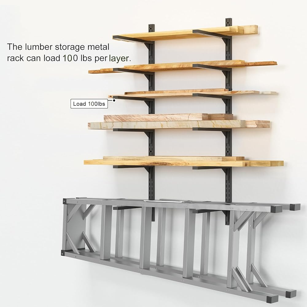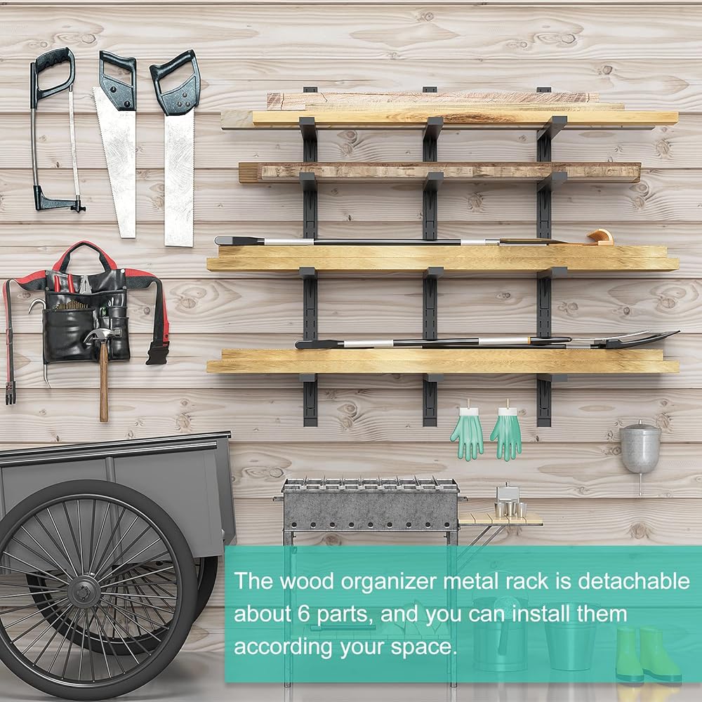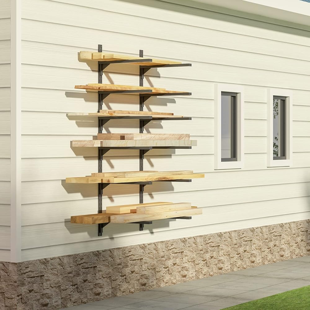 رف معدني منظم للخشب - رف معدني لتخزين الخشب قابل للفصل من 6 طبقات ورف منظم للخشب قابل للتعديل على الحائط لتخزين الخشب لسقيفة المرآب أو ورشة العمل