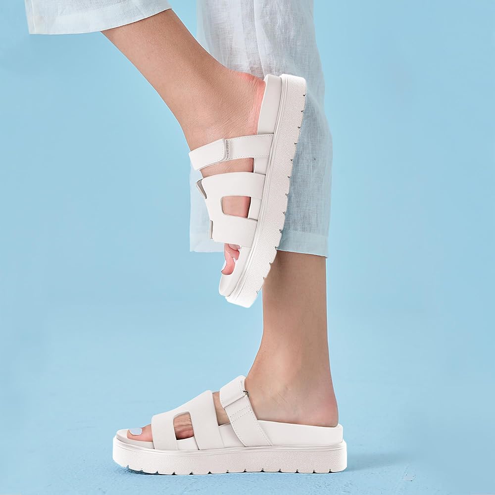 صنادل نسائية ذات نعل سميك مفتوحة من الأمام ونعل سميك ونعل سميك وفيلكرو سهل الارتداء، أحذية صيفية، أبيض، مقاس 9
