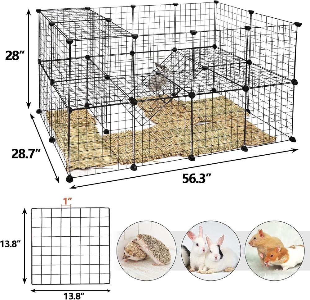 مثالية للحيوانات الأليفة الصغيرة - مثالية للخنازير الغينية، والأرانب، والنمس، والفئران، والهامستر، والقنافذ، والجراء، وغير مناسبة للكلاب الكبيرة أو الحيوانات التي يمكنها ممارسة الكثير من القوة، وسهلة مراقبتها من أي زاوية.