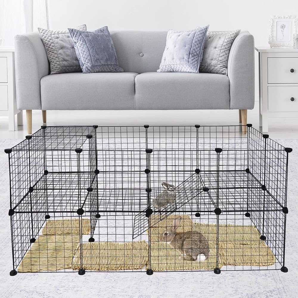 c & c قفص لخنازير غينيا داخلي الحيوانات الصغيرة روضة قفص مع حصيرة الإجمالي روضة للأرانب، خنازير غينيا، الأرنب، جرو، الهامستر سياج قفص بيت الكلب 36 لوحات DIY سلك ساحة السياج