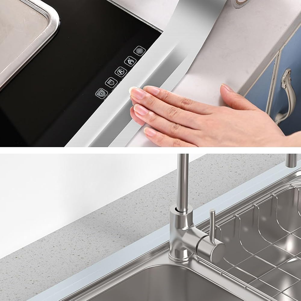 قطعتان من شريط رقائق الألومنيوم الفاخر، أشرطة أنابيب معدنية فضية مع دعامة لاصقة، شريط عازل شديد التحمل لدرجة الحرارة العالية لحوض حوض المطبخ وختم الجدار (2.5 سم)