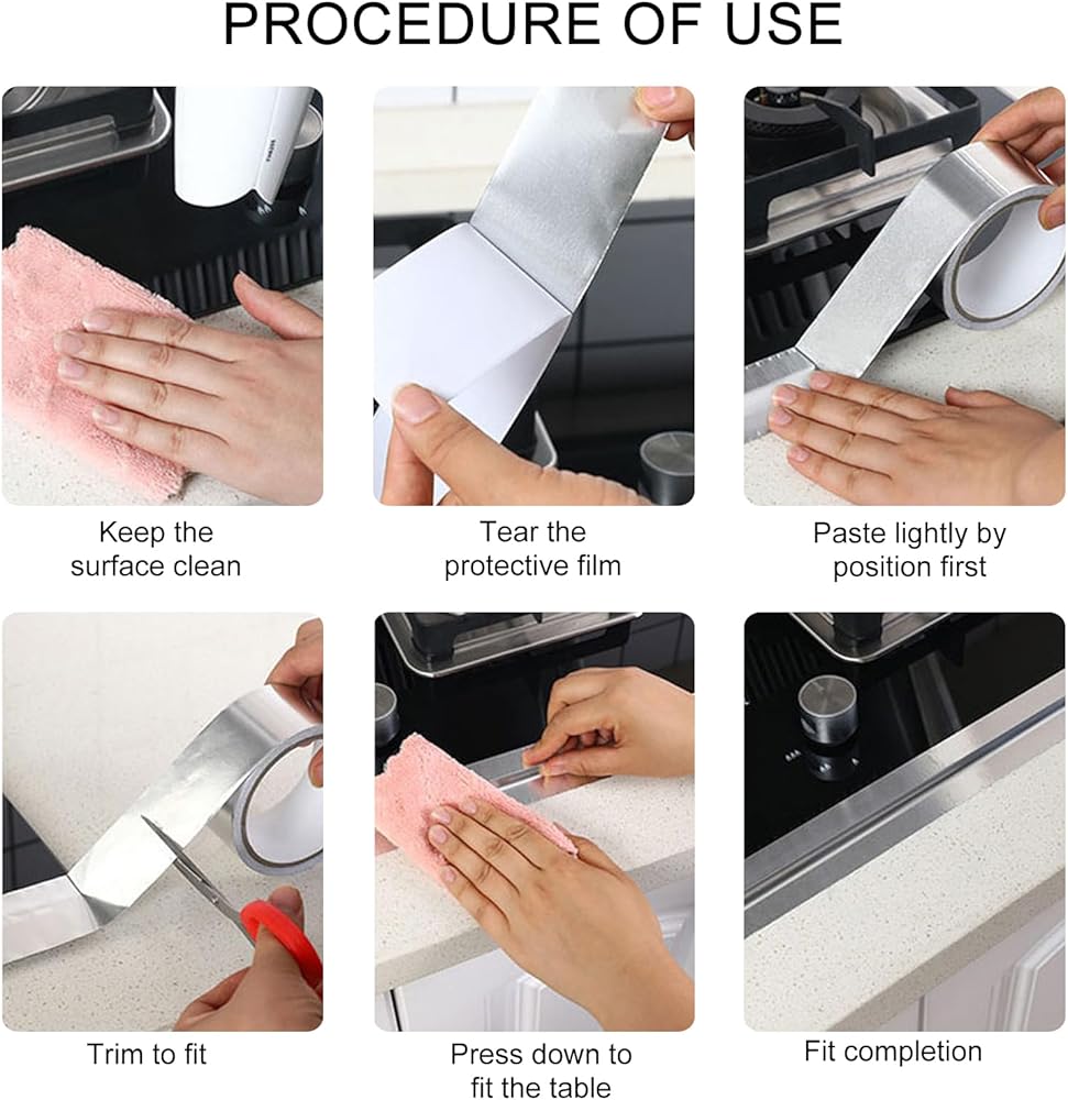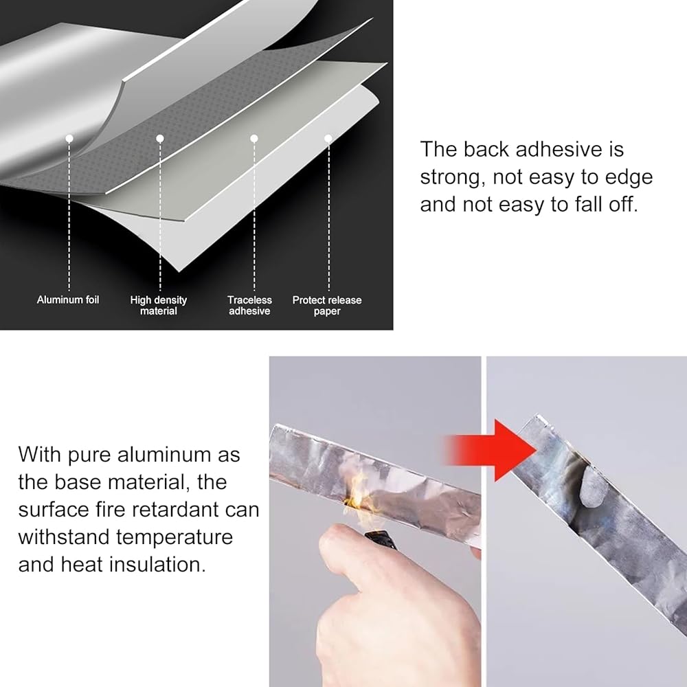 【التصاق قوي】الشريط المعدني الخاص بنا مصنوع من مواد لاصقة حساسة للضغط عالية الجودة. لذا فإن هذا الشريط يلتصق ويسهل تمزيقه، ولا يترك أي غراء متبقي. هذا الشريط المعدني العازل مناسب جدًا للمطبخ حيث أنه مقاوم للحرارة ومقاوم للماء. (مقاومة درجات الحرارة على المدى الطويل: 120 درجة مئوية، مقاومة درجات الحرارة على المدى القصير: 350 درجة مئوية).