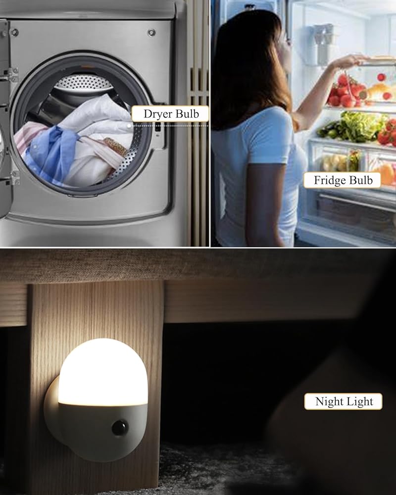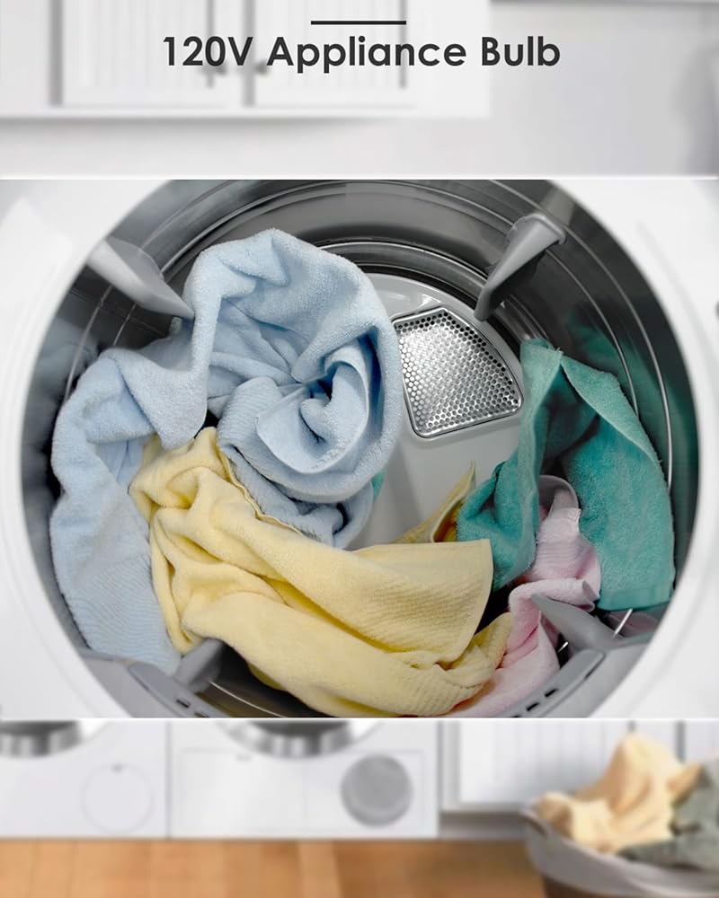 متوافق مع معظم العلامات التجارية. يمكن لمصباح المصباح الكهربائي 120 فولت هذا أن يحل محل المصابيح المتوهجة 10 وات 15 وات E12 ولكنه يسحب 2 واط فقط. تحتوي لمبة المجفف على قاعدة لولبية من نوع الشمعدانات وهي بدائل مباشرة للمصابيح المتوهجة المستخدمة في الأصل لإضاءة المجفف. مناسب تمامًا لمعظم العلامات التجارية المشهورة مثل GE وKenmore وLG وWirlpool وMaytag وIkea.