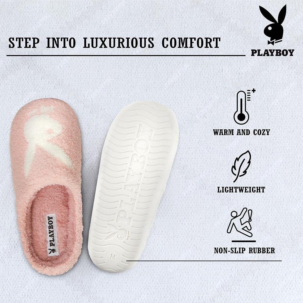 قماش فاخر: انزلق إلى شباشب المنزل الغامضة من Playboy للنساء واستمتع بتجربة الاسترخاء بفضل تصميمها الناعم والفاخر. بفضل النعل المطاطي القوي، توفر هذه الشرائح للسيدات احتكاكًا موثوقًا، مما يجعلها مثالية للارتداء في الأماكن المغلقة في جميع أنحاء المنزل
