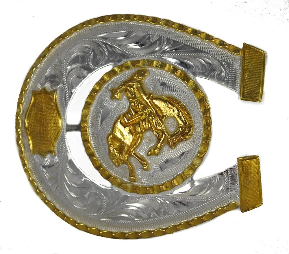 إبزيم حزام على شكل حدوة حصان من الألبكة للرجال مقاس 8.89 سم عرضًا / 7.62 سم ارتفاعًا فضي/ذهبي