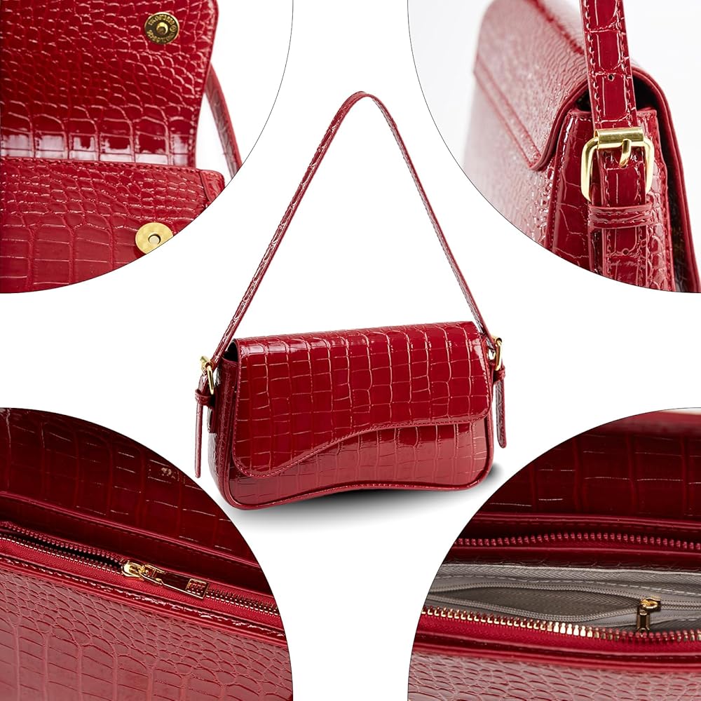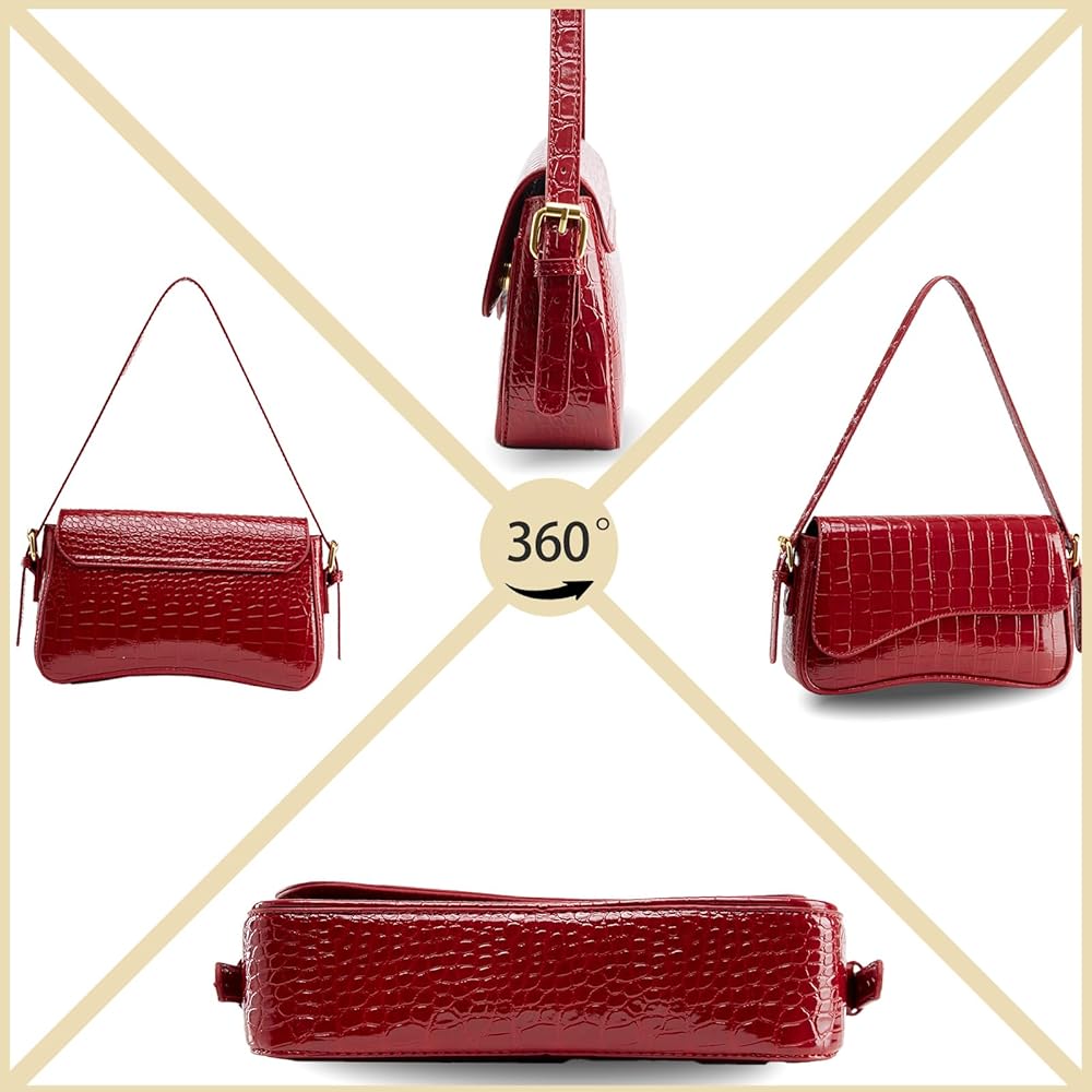3. حقيبة الكتف السوداء مصنوعة من جلد التمساح عالي الجودة وإكسسوارات معدنية مطلية بالكهرباء، وهي رائعة ومتينة.