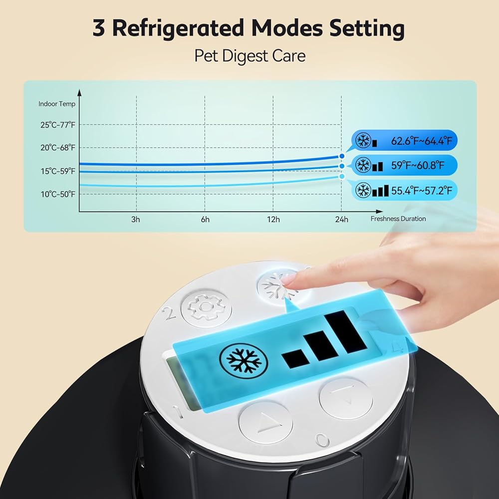 وظيفة التبريد الذكية: يستخدم UBPet F10 رقائق تبريد شبه موصلة لتبريد طويل الأمد للحفاظ على الطعام طازجًا، لا داعي للقلق بشأن تغيير عبوات الثلج، وتوفير المال والوقت.