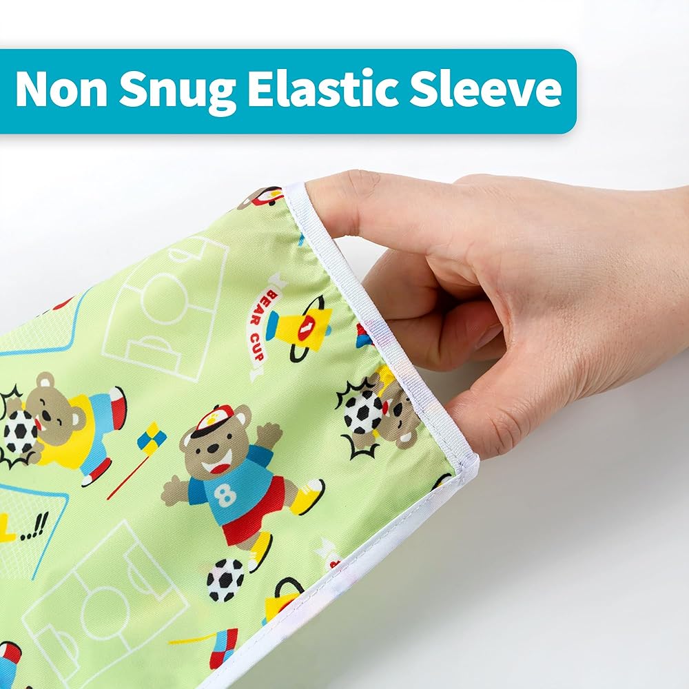 【مقاومة للماء بالكامل】- تتكون من نسيج PTU ناعم وخفيف الوزن، المريلة بأكملها مقاومة للماء. المرايل الخاصة بنا خالية من مادة BPA، وخالية من الفثالات، وخالية من PVC، وخالية من الفينيل، وخالية من الرصاص.
