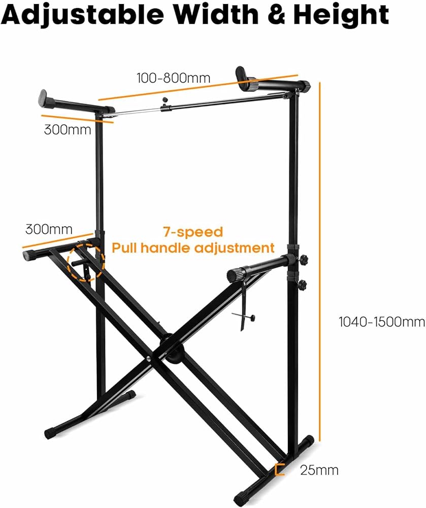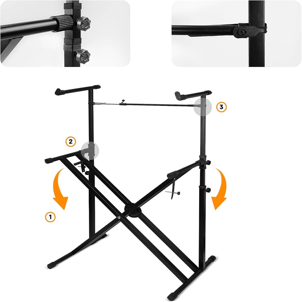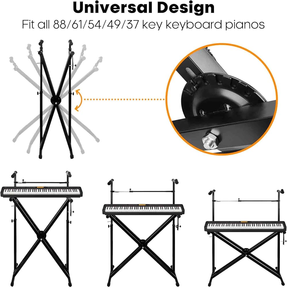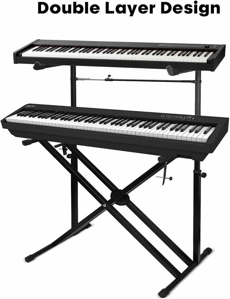 حامل لوحة مفاتيح بطبقتين، حامل لوحة مفاتيح مزدوج للبيانو الإلكتروني، المركب، حامل وحدة تحكم DJ، حامل لوحة مفاتيح مزدوج الطبقة على شكل X، عرض ارتفاع قابل للتعديل